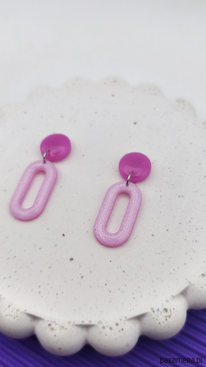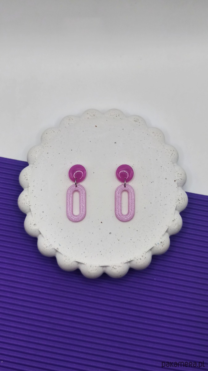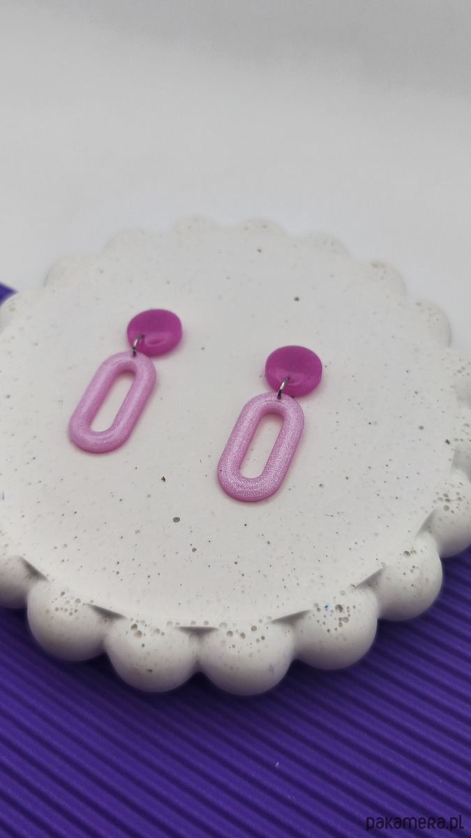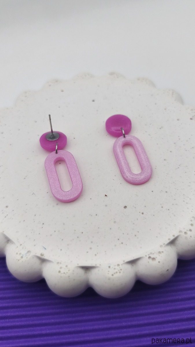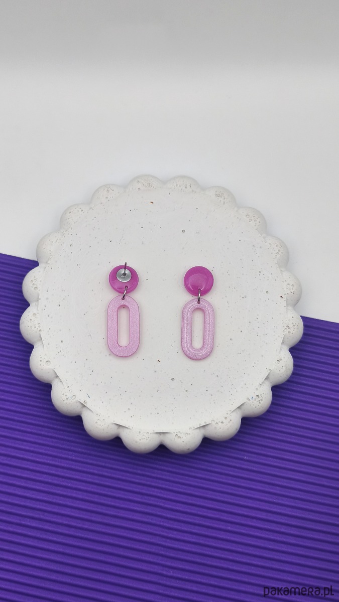 Kolczyki LOOP mają bardzo nowoczesny i graficzny charakter – owalny, podłużny kształt kojarzący się formą łańcucha. Perłowy róż z dodatkiem intensywnej fuksji.