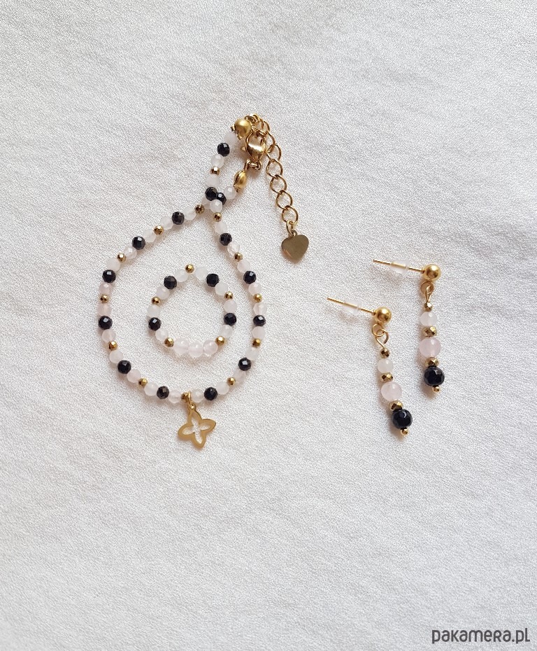 - Rodzaj kamienia: turmalin, kwarc różowy