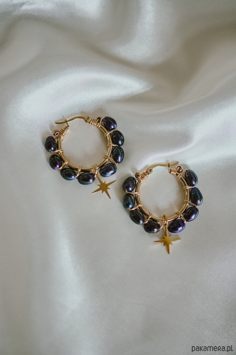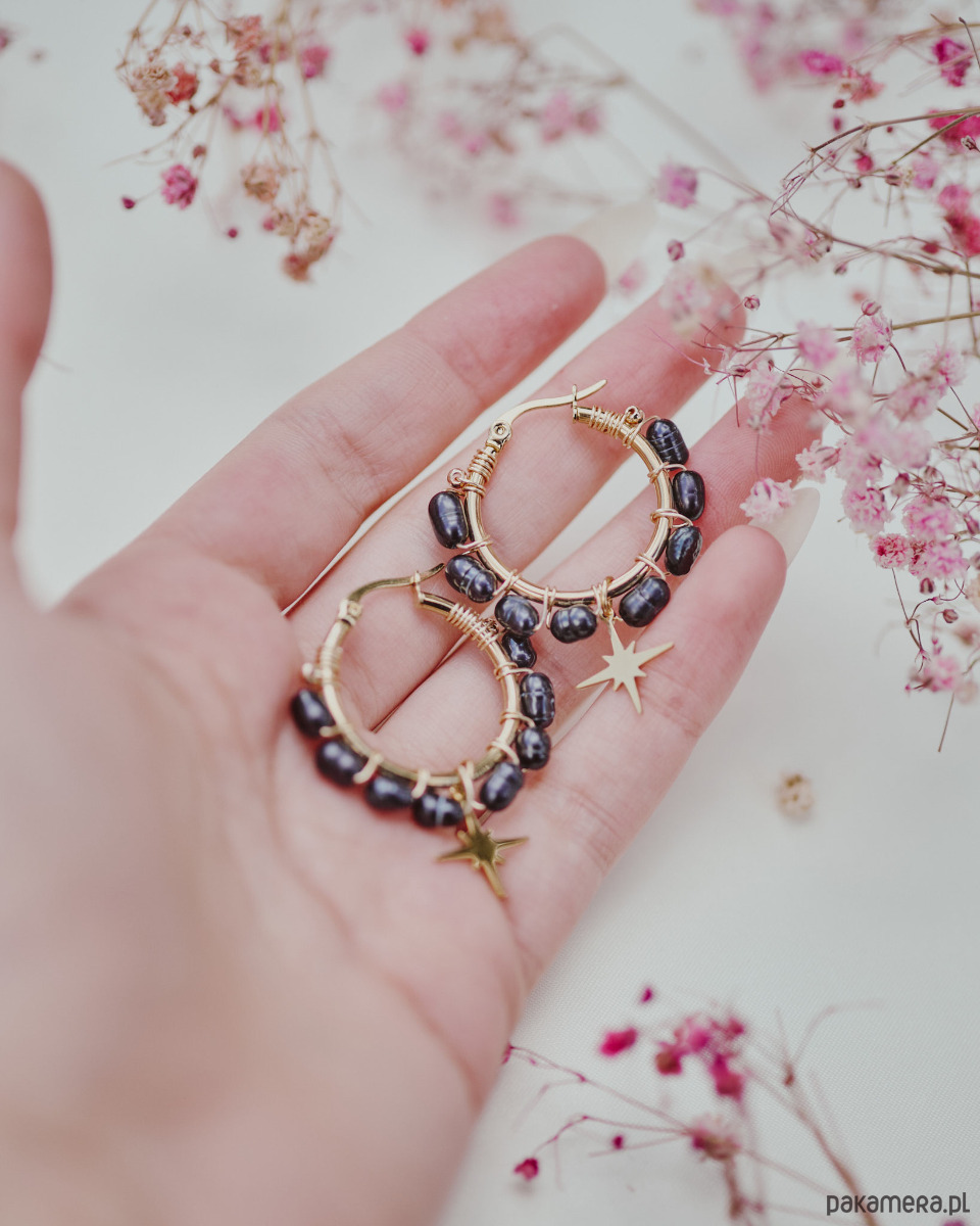 Kolczyki Lumina, czarne perły z gwiazdką