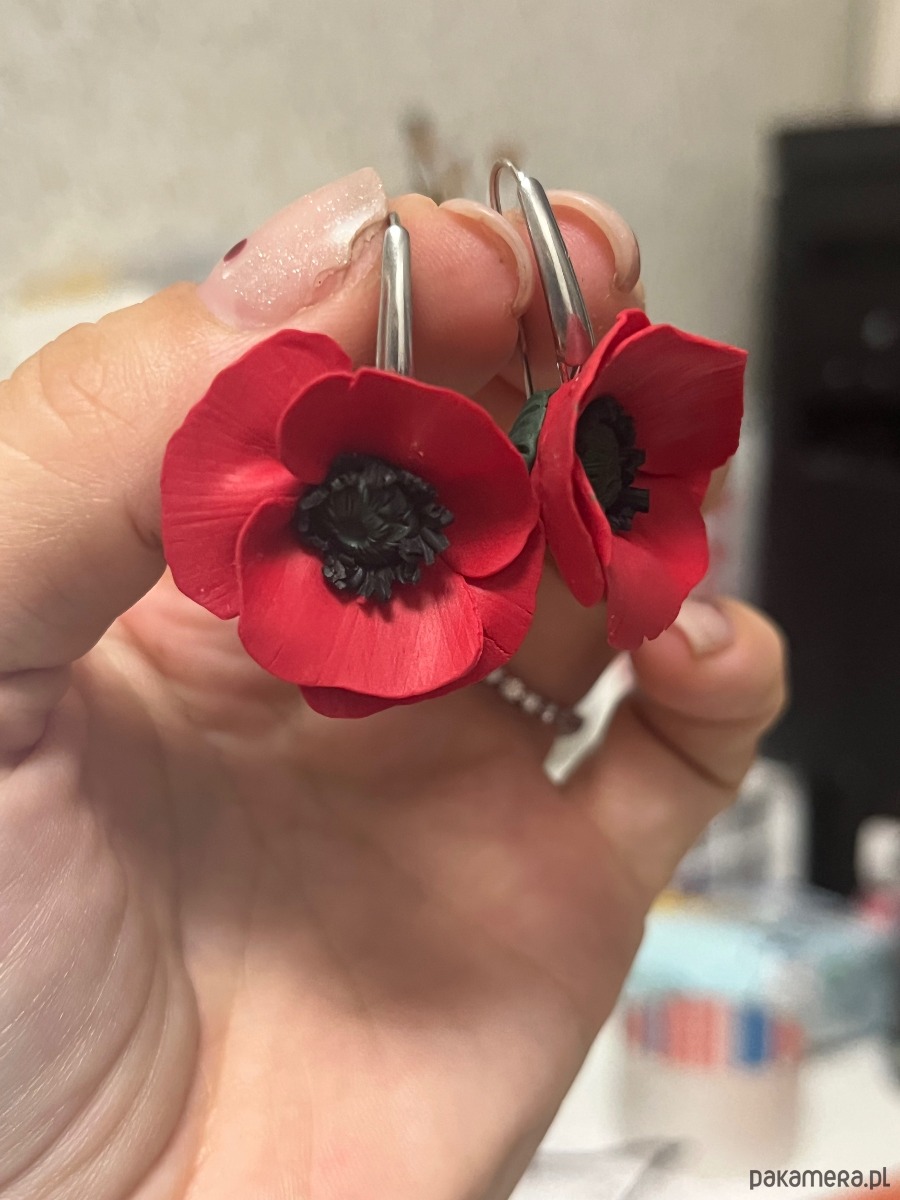 Stylowe i wyjątkowe kolczyki maki, wykonane z wysokiej jakości gliny polimerowej.