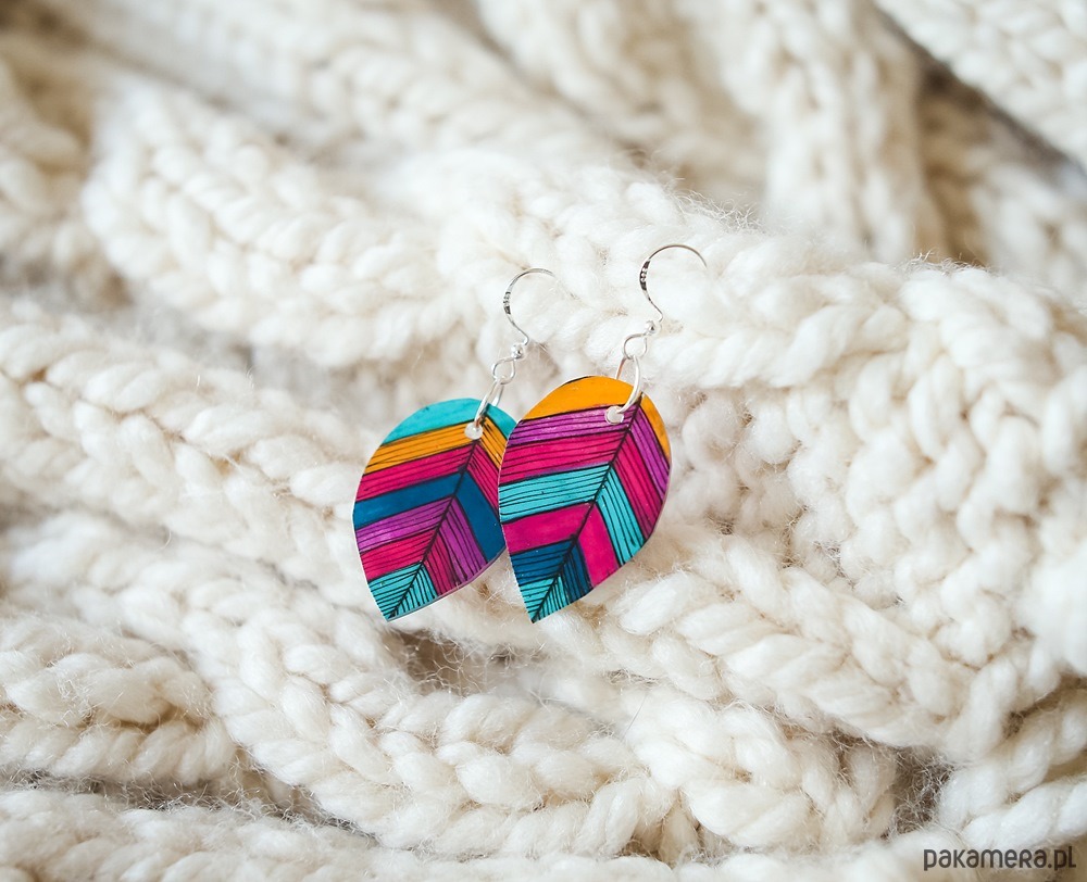 Bardzo lekkie kolczyki, półprzezroczyste, wyglądają jak szklany witraż.