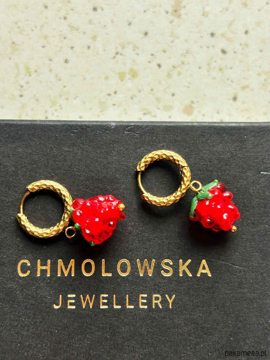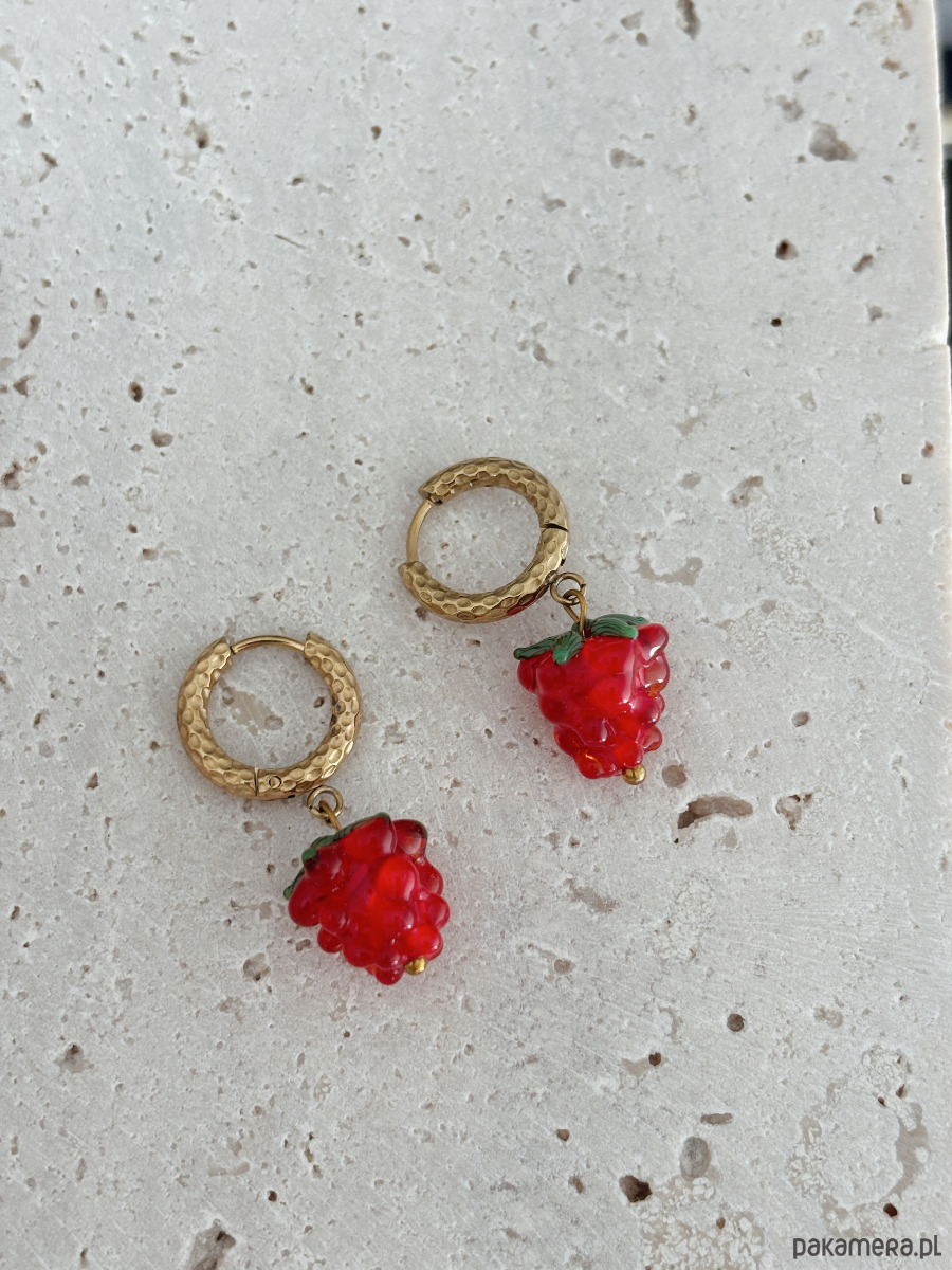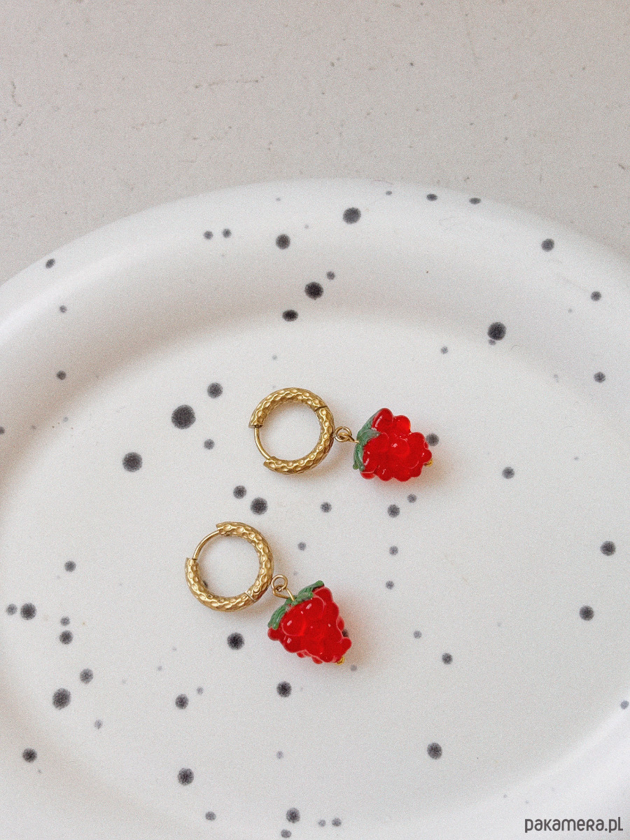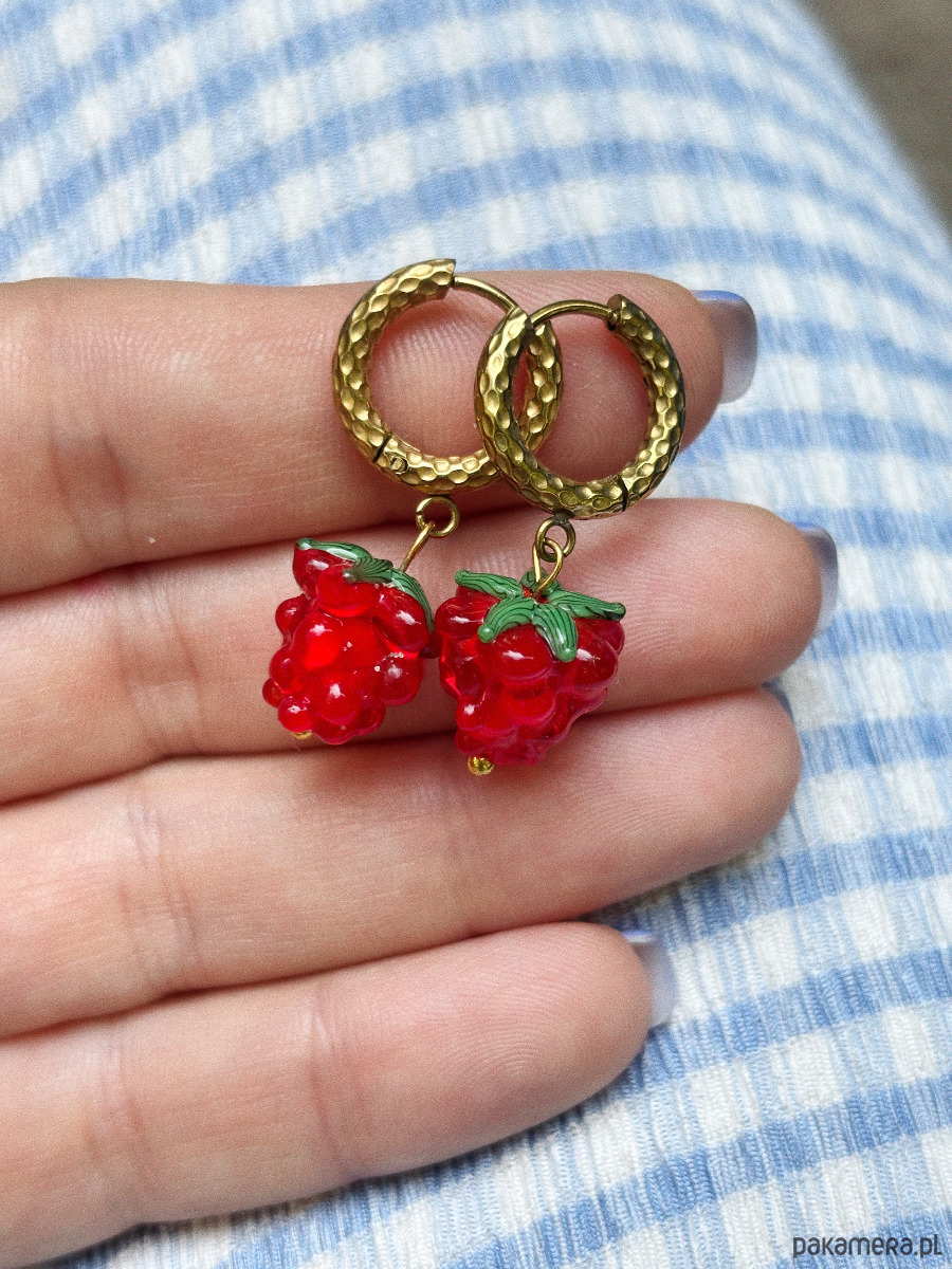 Kolczyki owoce, kolczyki z malinami, kolczyki szklane, owocowa biżuteria