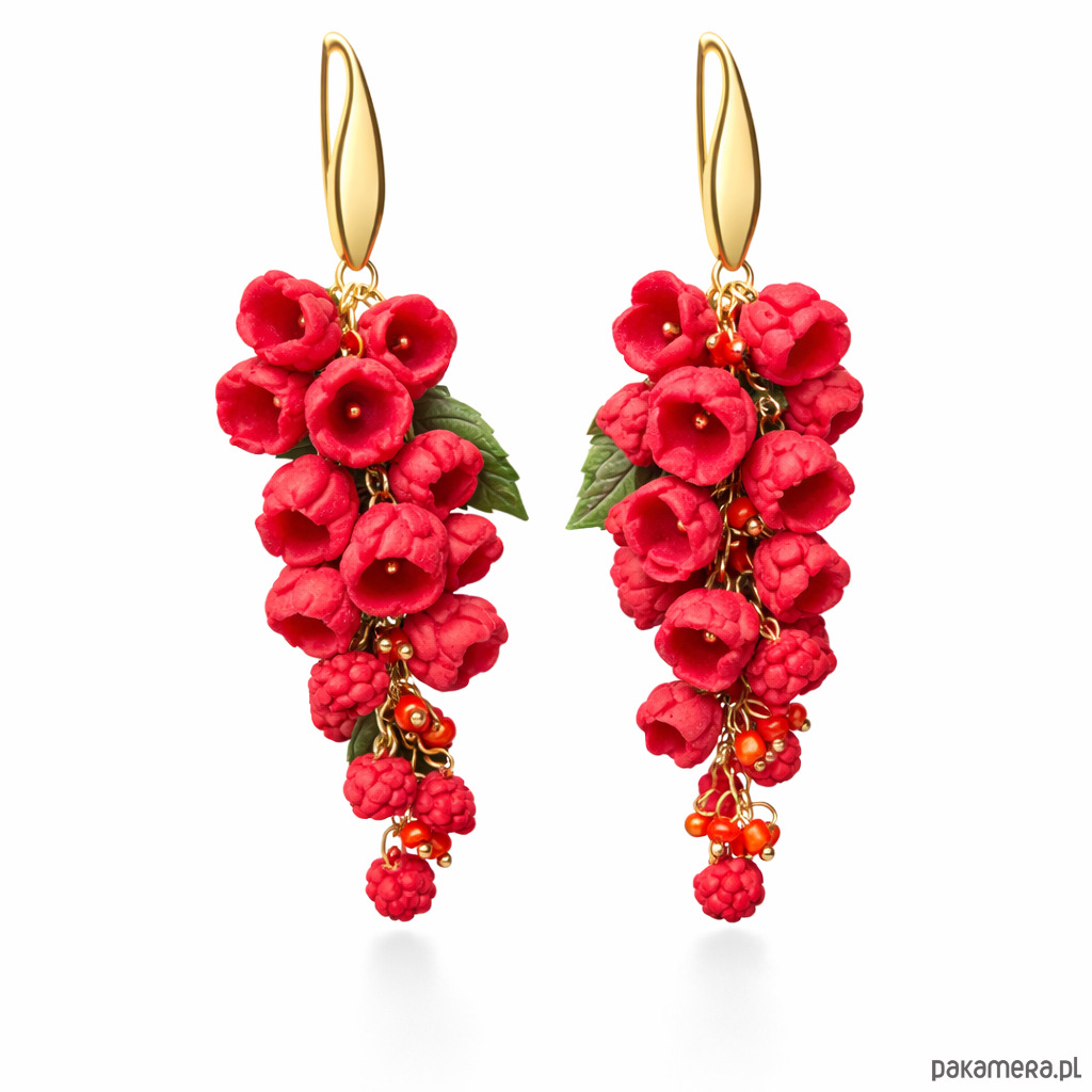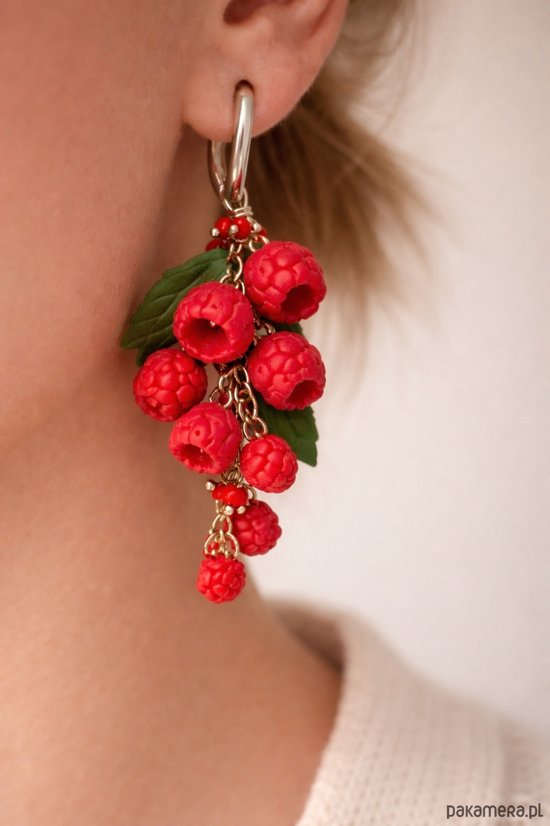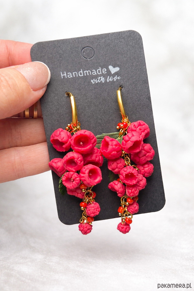 Kolczyki malina wiszące polimerowa glina ręcznie robione