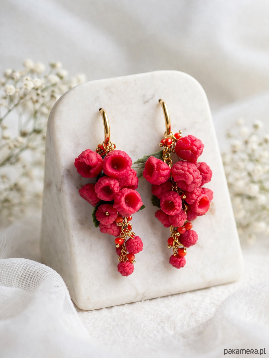 Ręcznie wykonane, lekkie i bardzo efektowne kolczyki w formie malinowych kiści. Idealne na lato, wakacje, festiwale i do codziennych stylizacji z charakterem 💕