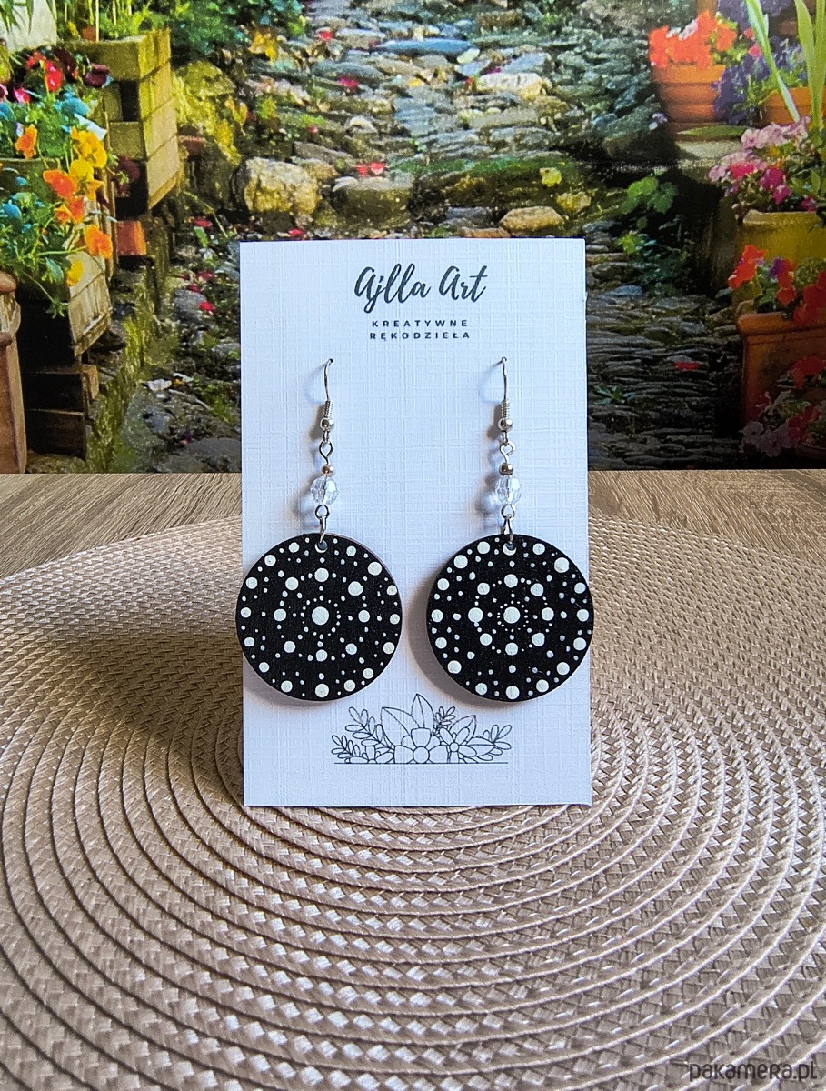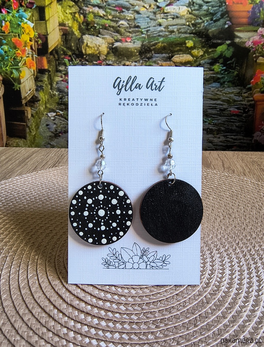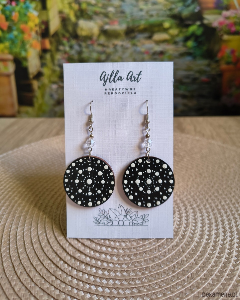 Lekkie kolczyki drewniane ręcznie malowane farbami akrylowymi.
