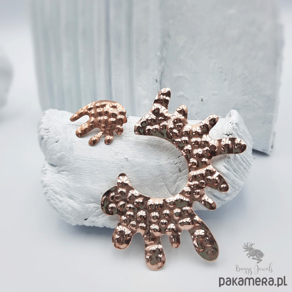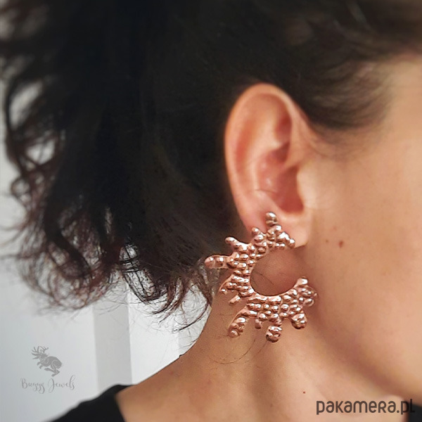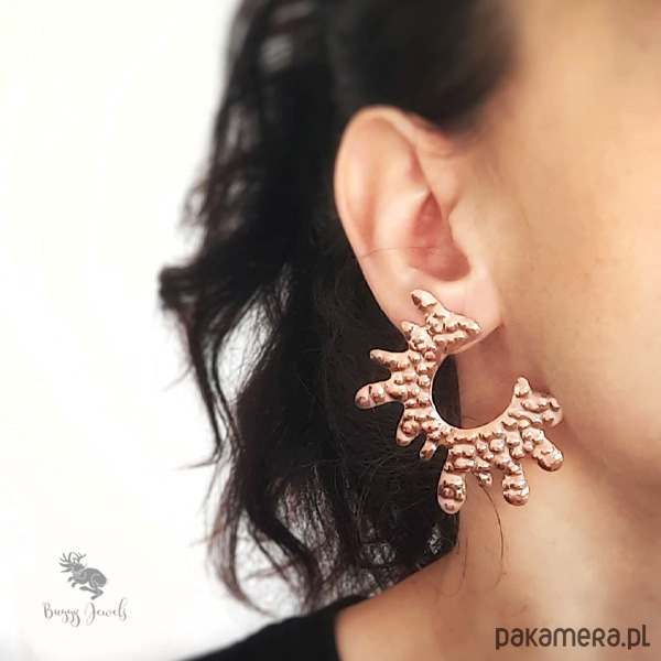 Fakturowane kolczyki wykonane są z miedzi, która została poddana procesowi repusowania.