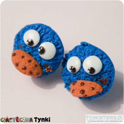 słodkie kolczyki sztyfty z sylikonowymi zatyczkami, ręcznie robione z masy termoutwardzalnej FIMO, średnica ~ 2 cm