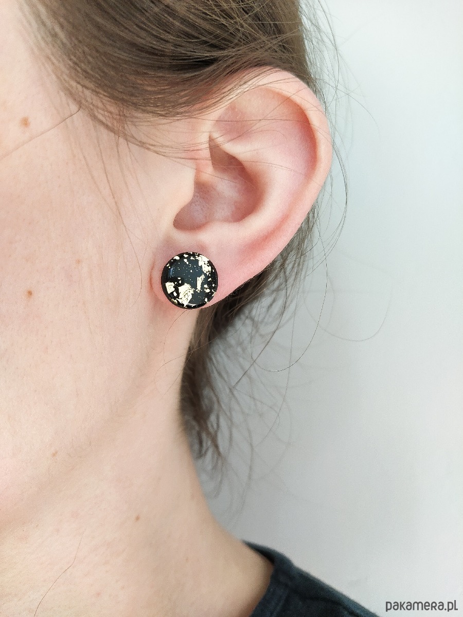 Czarne eleganckie kolczyki sztyfty ze złoceniami