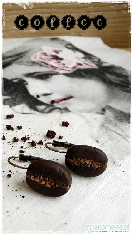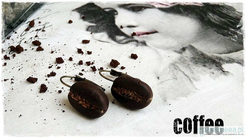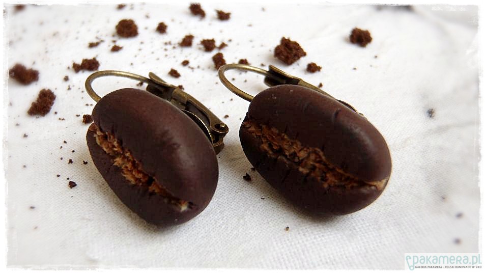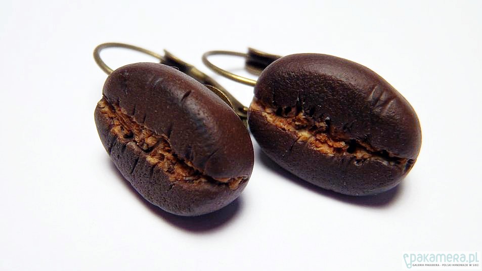 witam serdecznie, przedmiotem sprzedaży są kolczyki w formie ziarenek kawy. Ziarenka wykonane zostały z modeliny fimo. Bigiel angielski w kolorze starego złota. wielkość zawieszki ok, 1,5 cm. Kolczyki są bardzo leciutkie. zapraszam wszystkich smakoszy kawy.