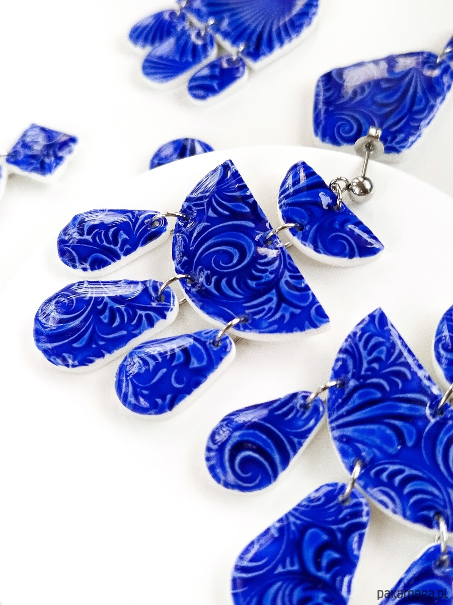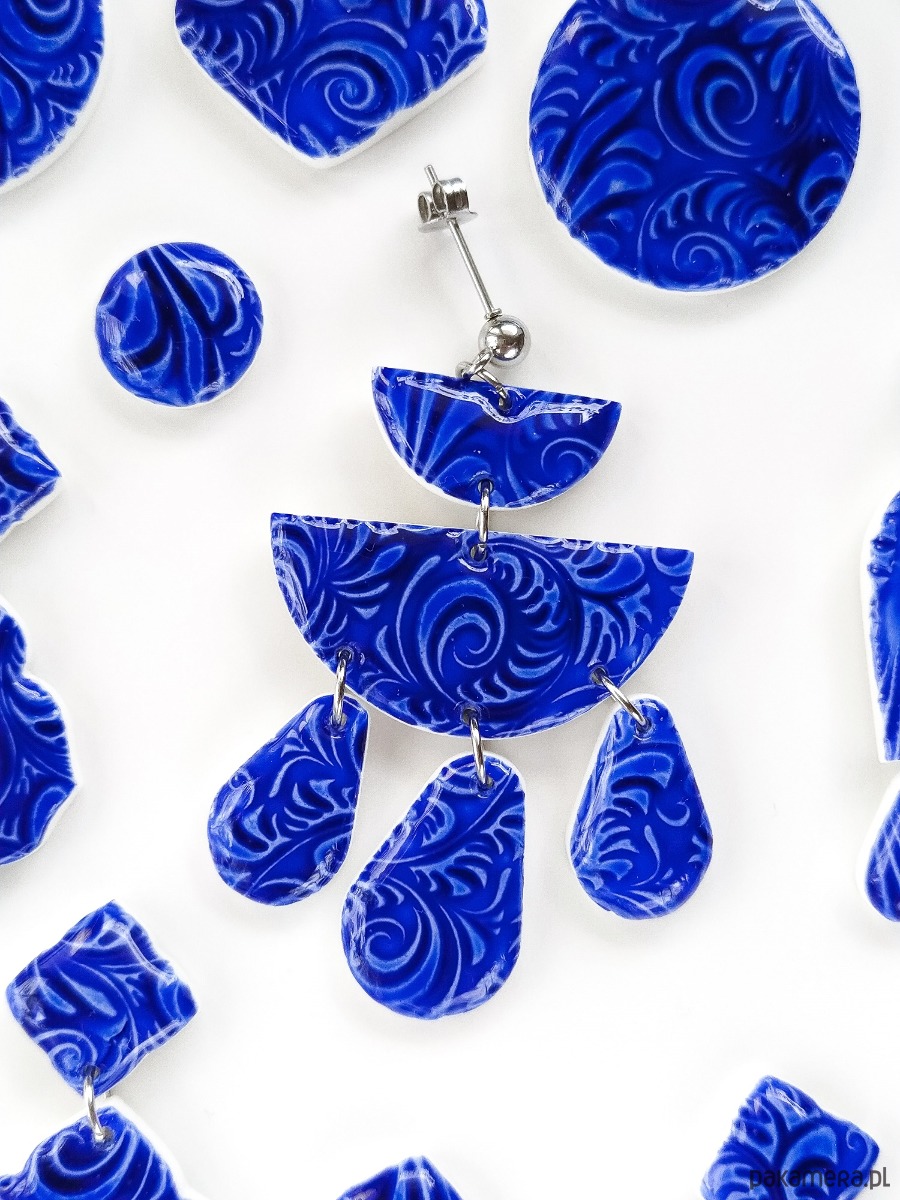 Wiszące granatowe kolczyki sztyfty z teksturą