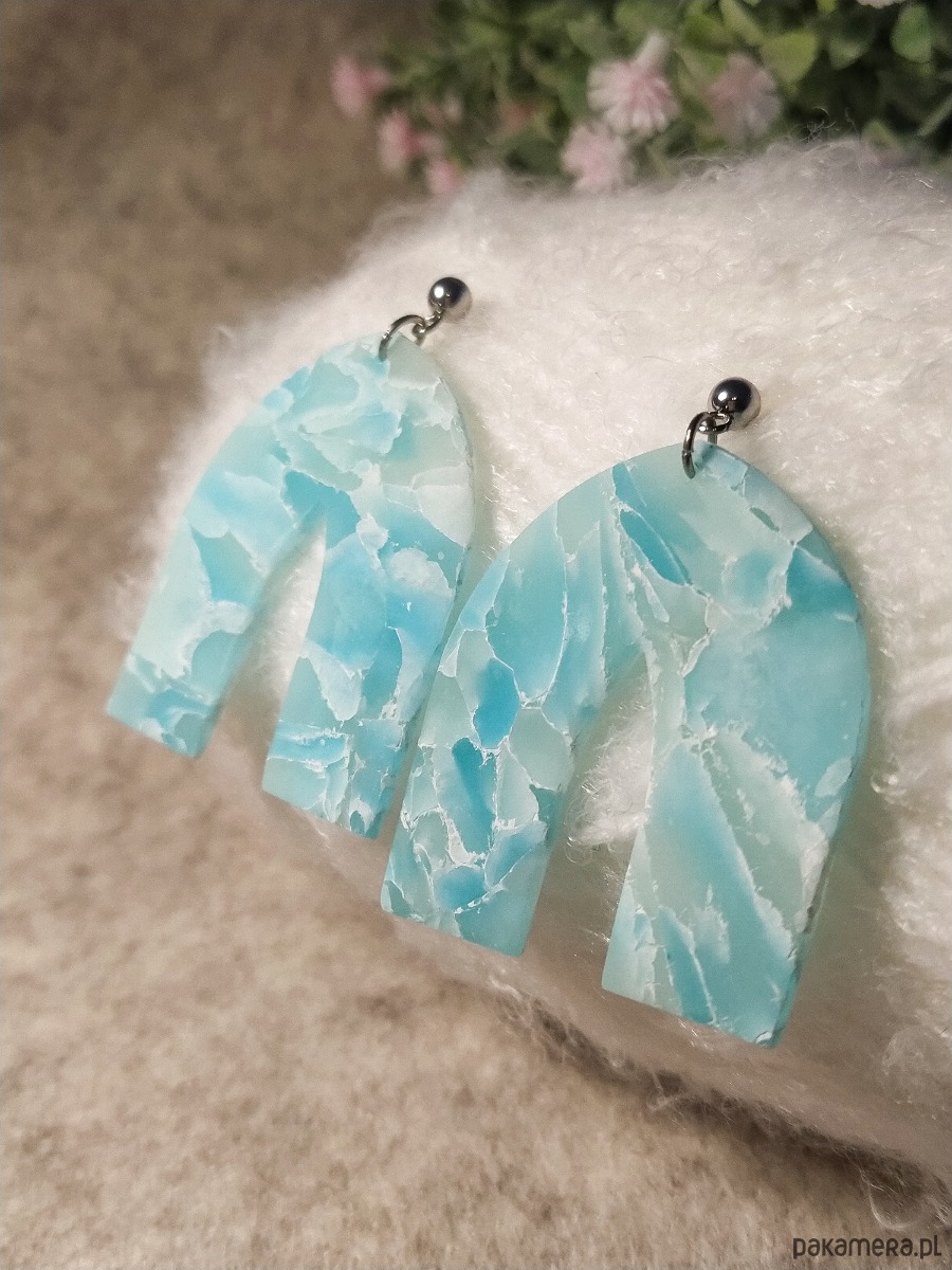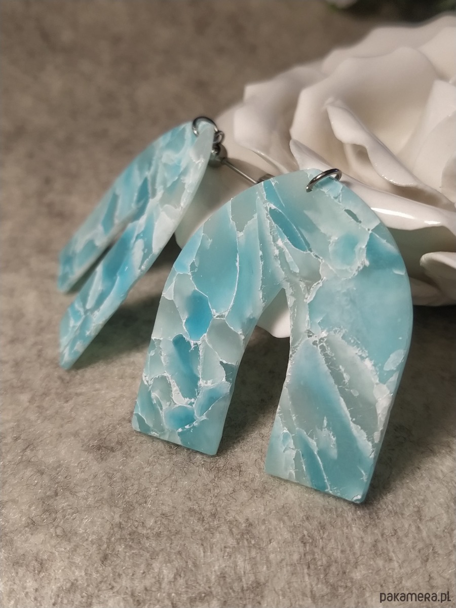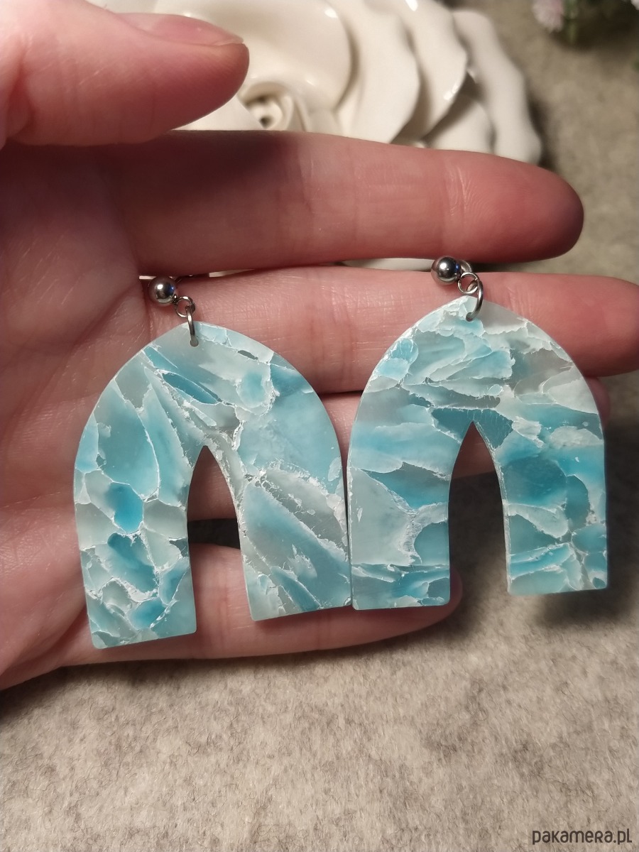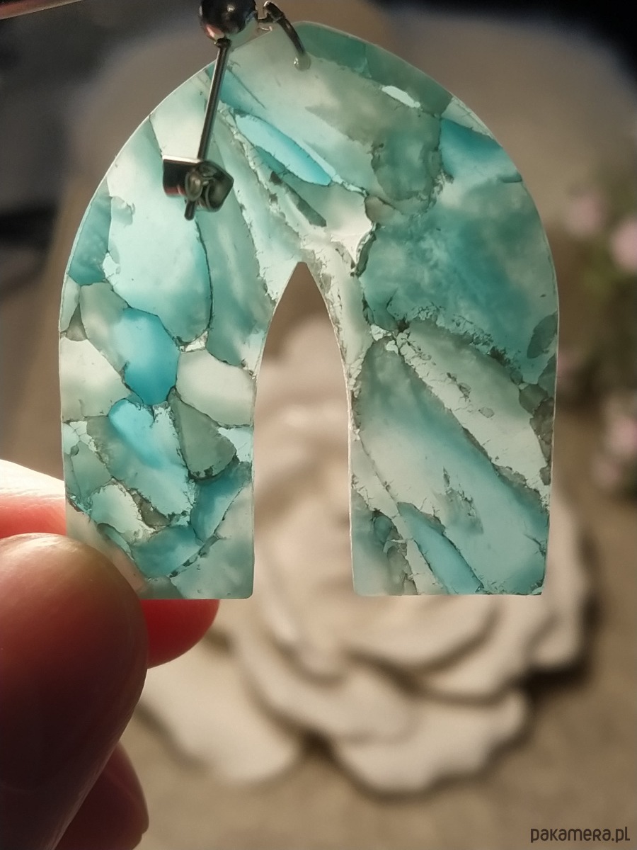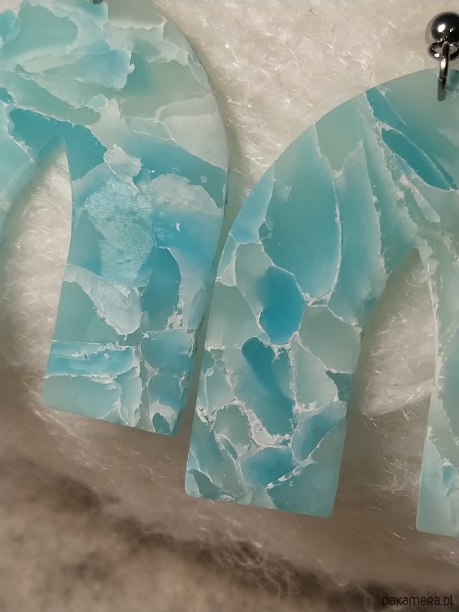Kolczyki imitują witraże, wodę, marmur. Są przeźroczyste.