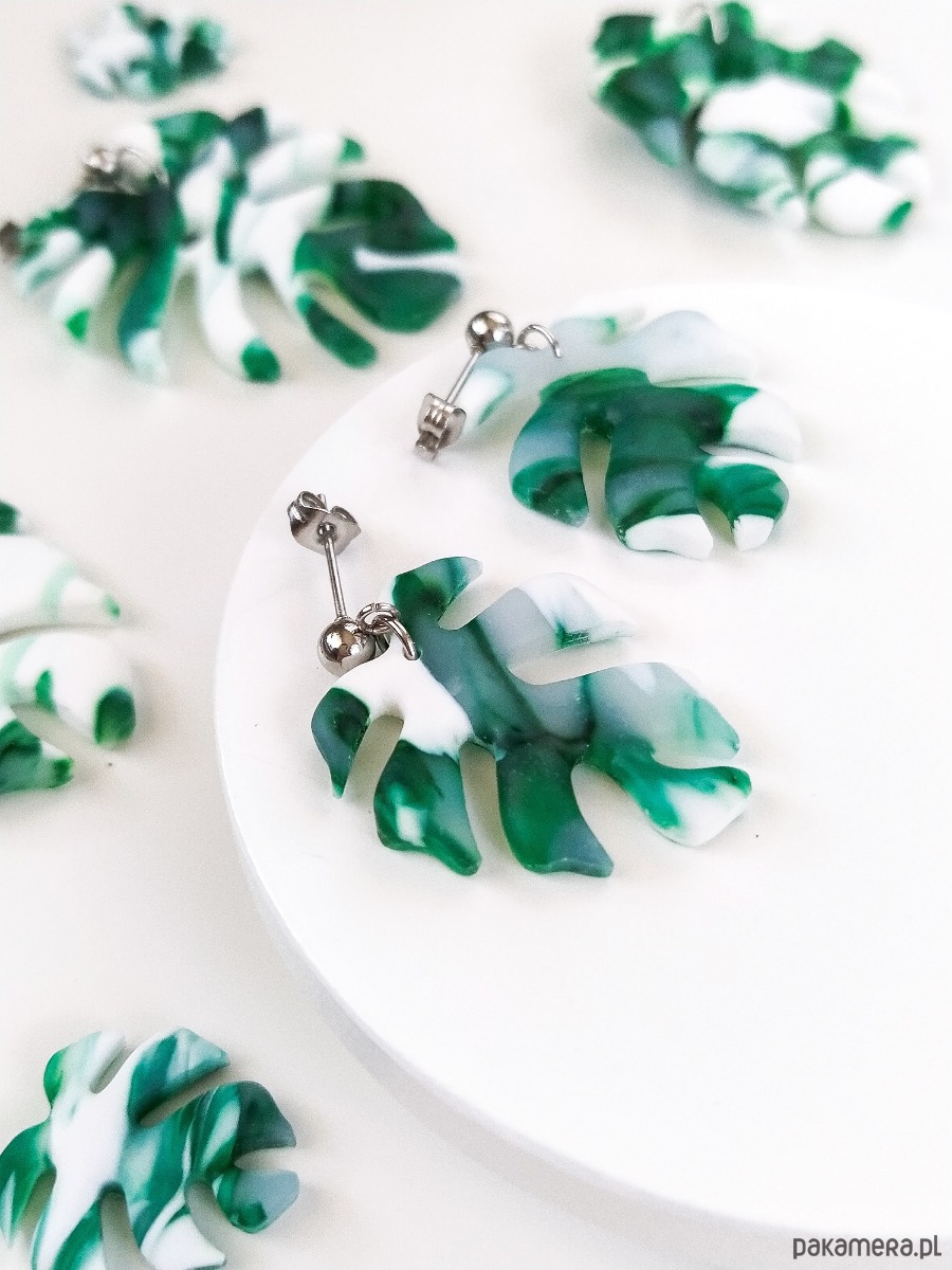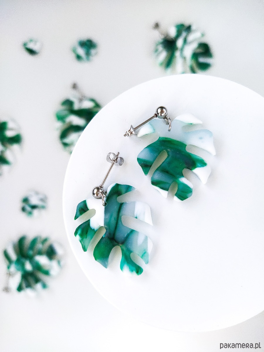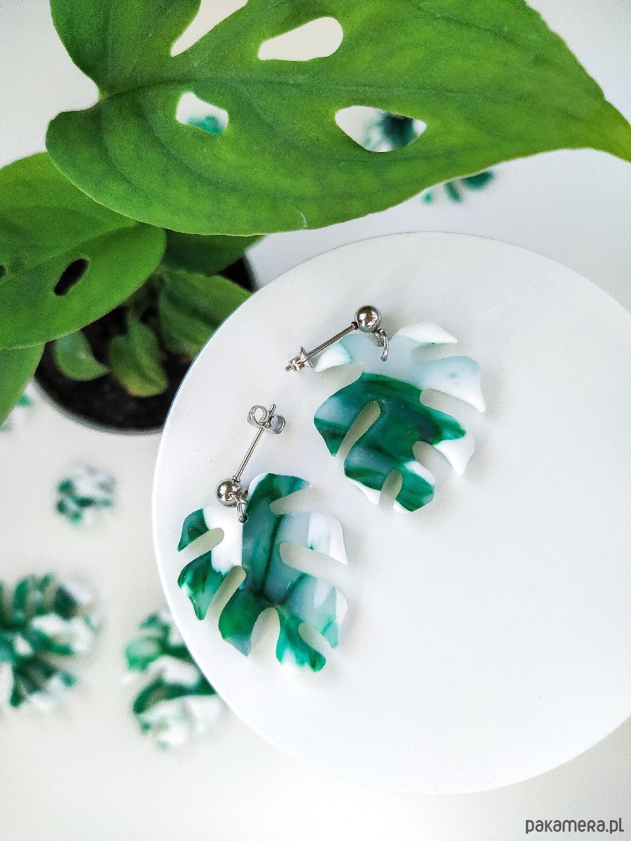 Zielone matowe kolczyki monstera