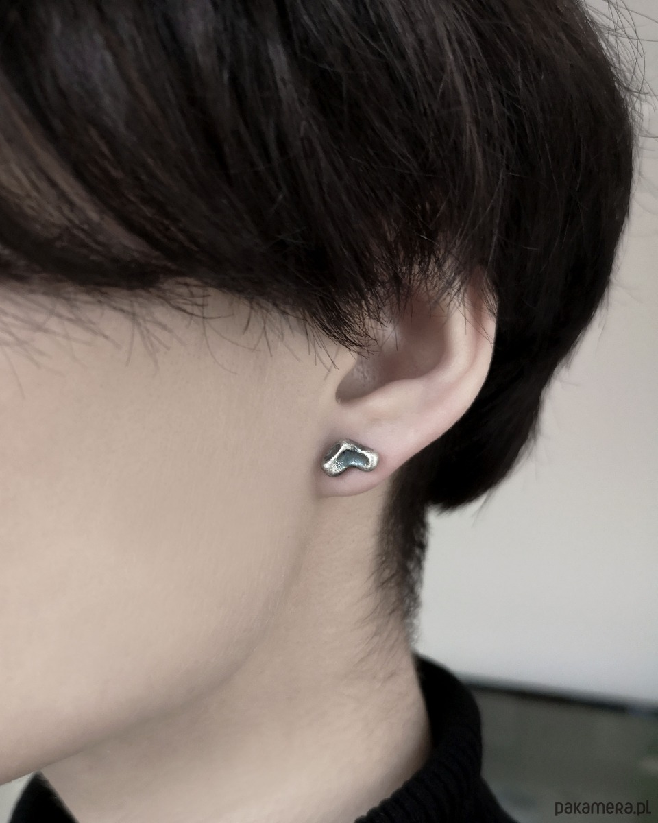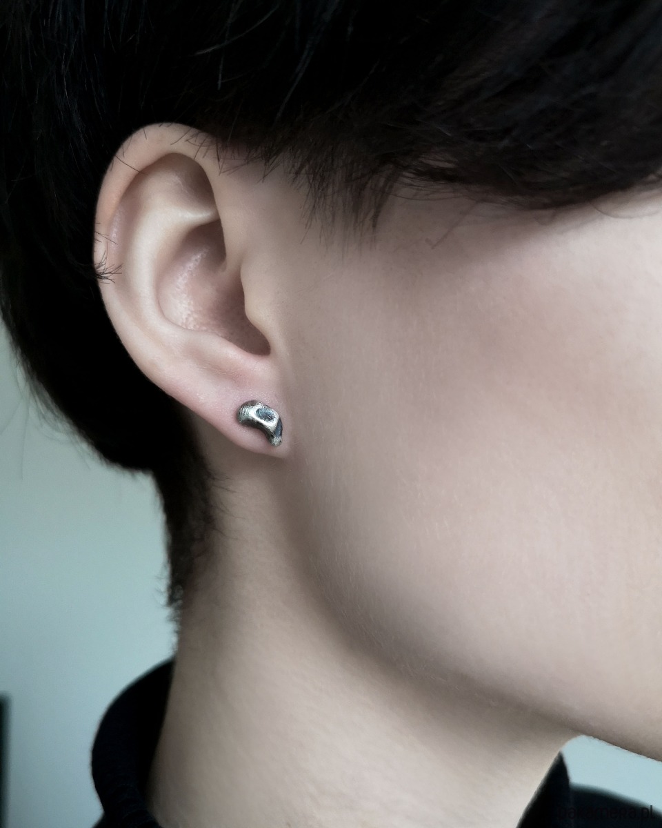 Unikatowe asymetryczne Kolczyki Meteoryty wykonane ze srebra próby 925.