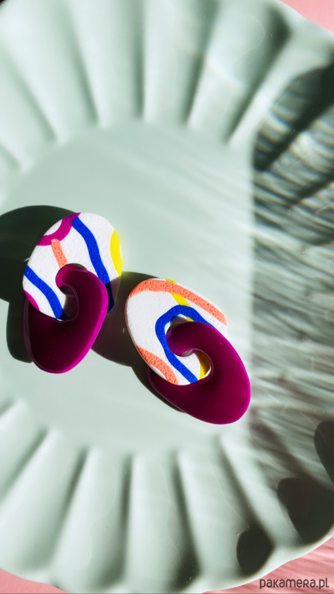 Ręcznie robione, ultra lekkie kolczyki wykonane z gliny polimerowej.