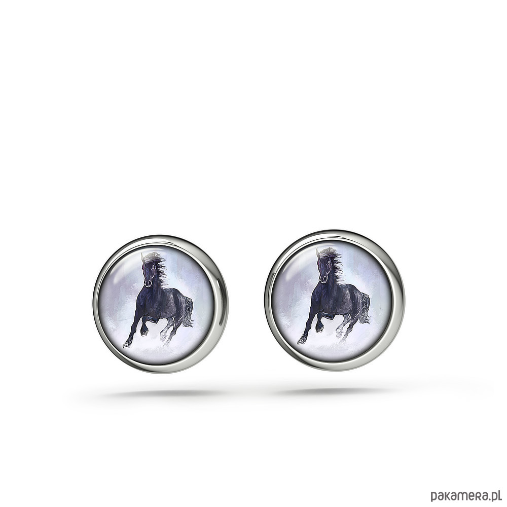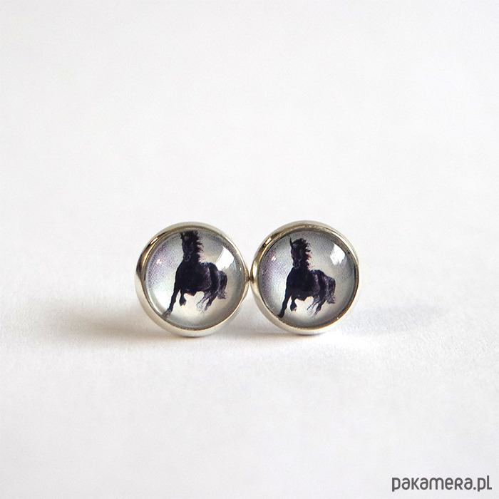 Grafika ukryta w delikatnych kolczykach, pod osłoną przeźroczystego półokrągłego szkiełka.