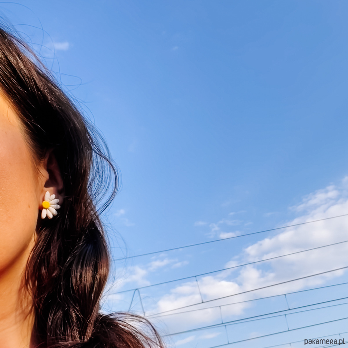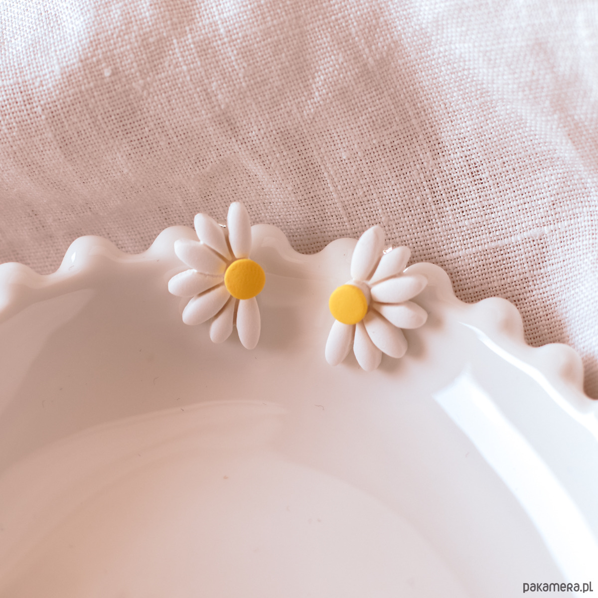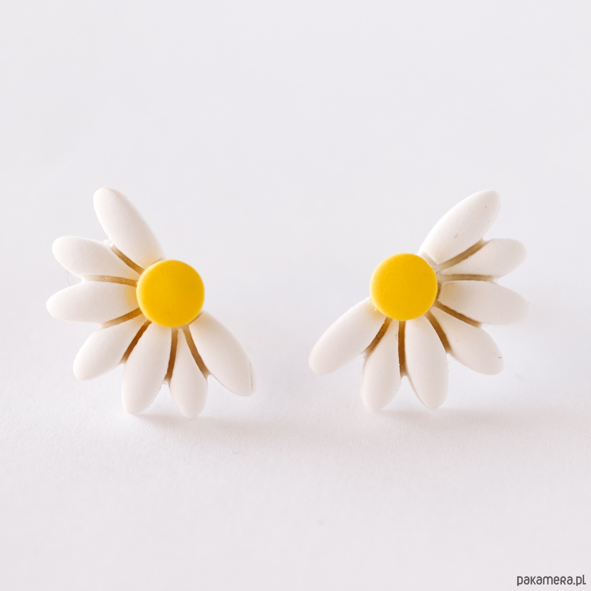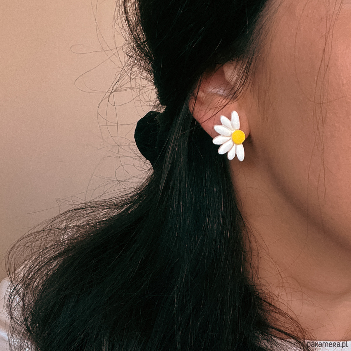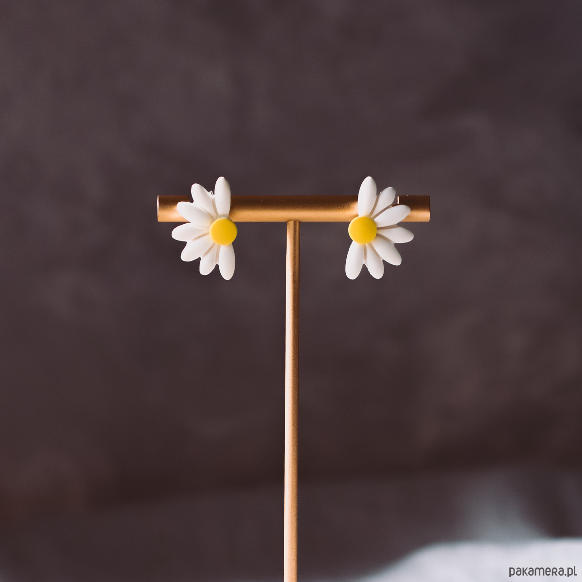 Idealne na wiosnę, lato, jesień, zimę. Drobne, białe stokrotki. Wkrętki na sztyfcie ze srebra.
