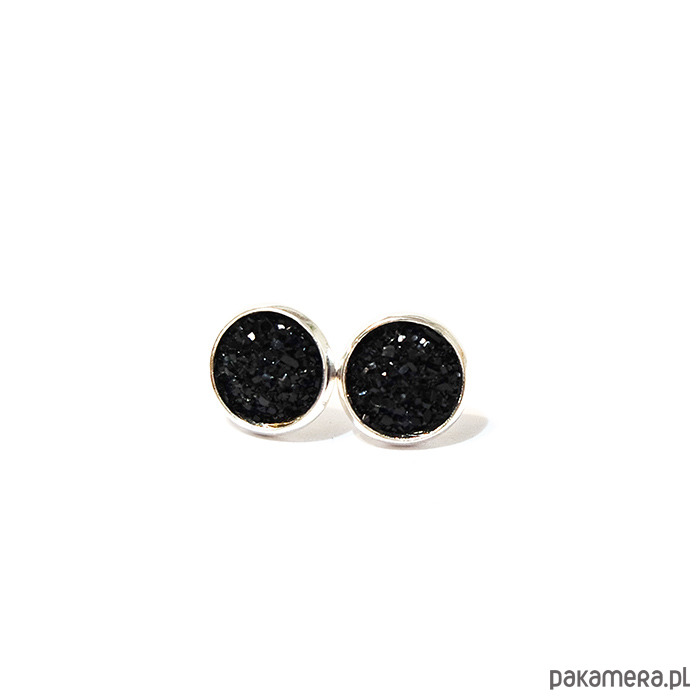 Oryginalne kolczyki z kaboszonem z żywicy - druzy, mieniący się w kolorze czarnym.