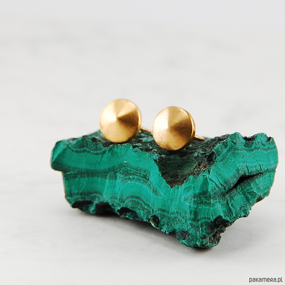 Okrągłe srebrne kolczyki w matowym wykończeniu. Pokryte żołtym złoceniem o grubości 2 mikronów oraz zabezpieczone nanopowłoką.