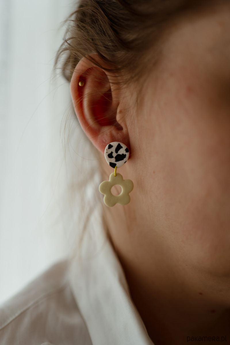 Wiszące kolczyki kwiatki MINI WERSJA. Każdy element jest wykonany, wycinany i szlifowany ręcznie z dbałością o każdy szczegół.