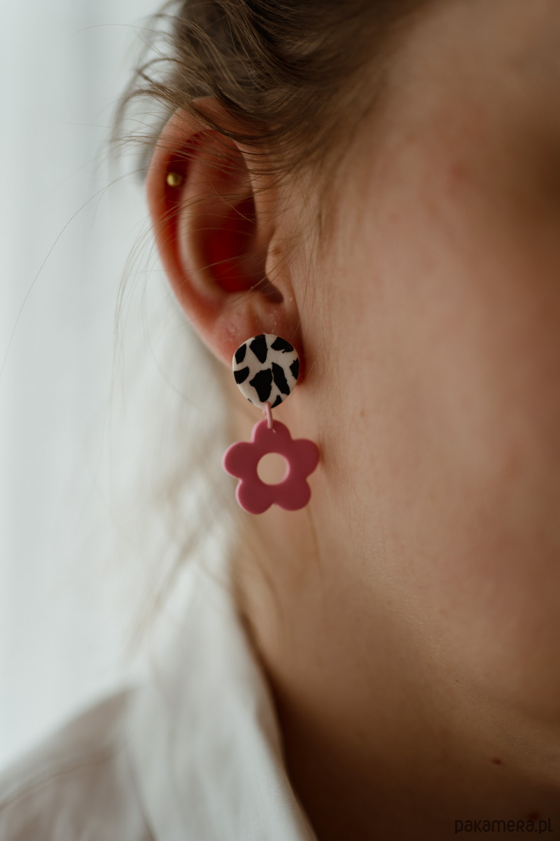 Wiszące kolczyki kwiatki MINI WERSJA. Każdy element jest wykonany, wycinany i szlifowany ręcznie z dbałością o każdy szczegół.