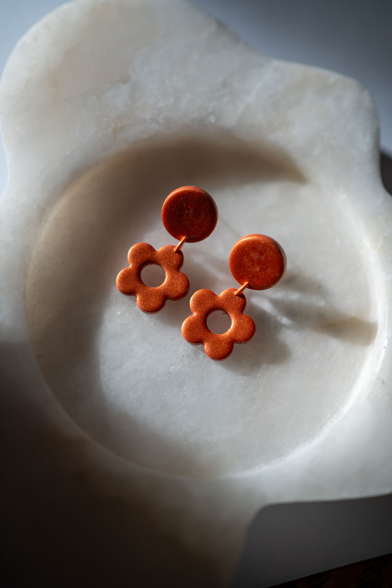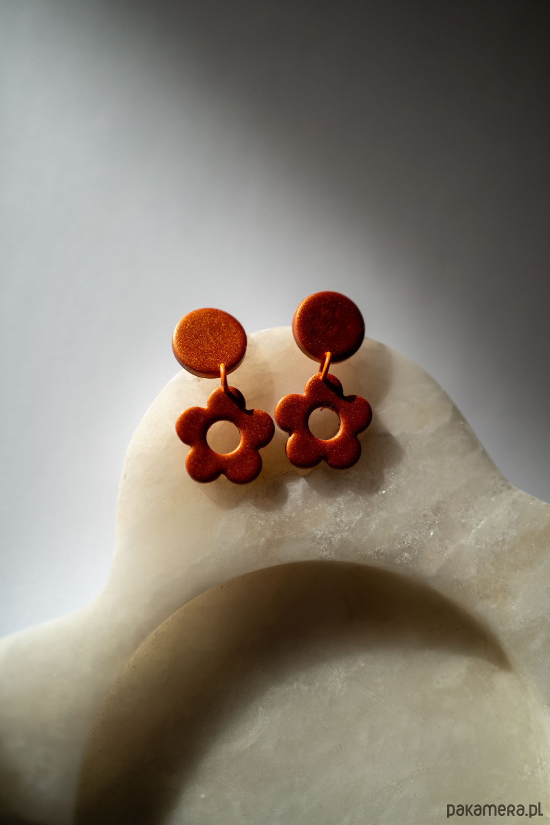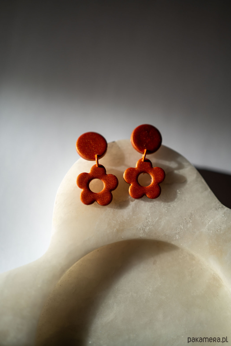Wiszące kolczyki kwiatki MINI WERSJA. Każdy element jest wykonany, wycinany i szlifowany ręcznie z dbałością o każdy szczegół.