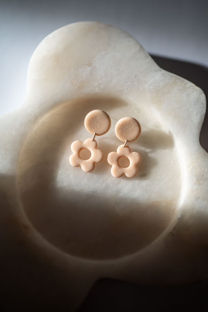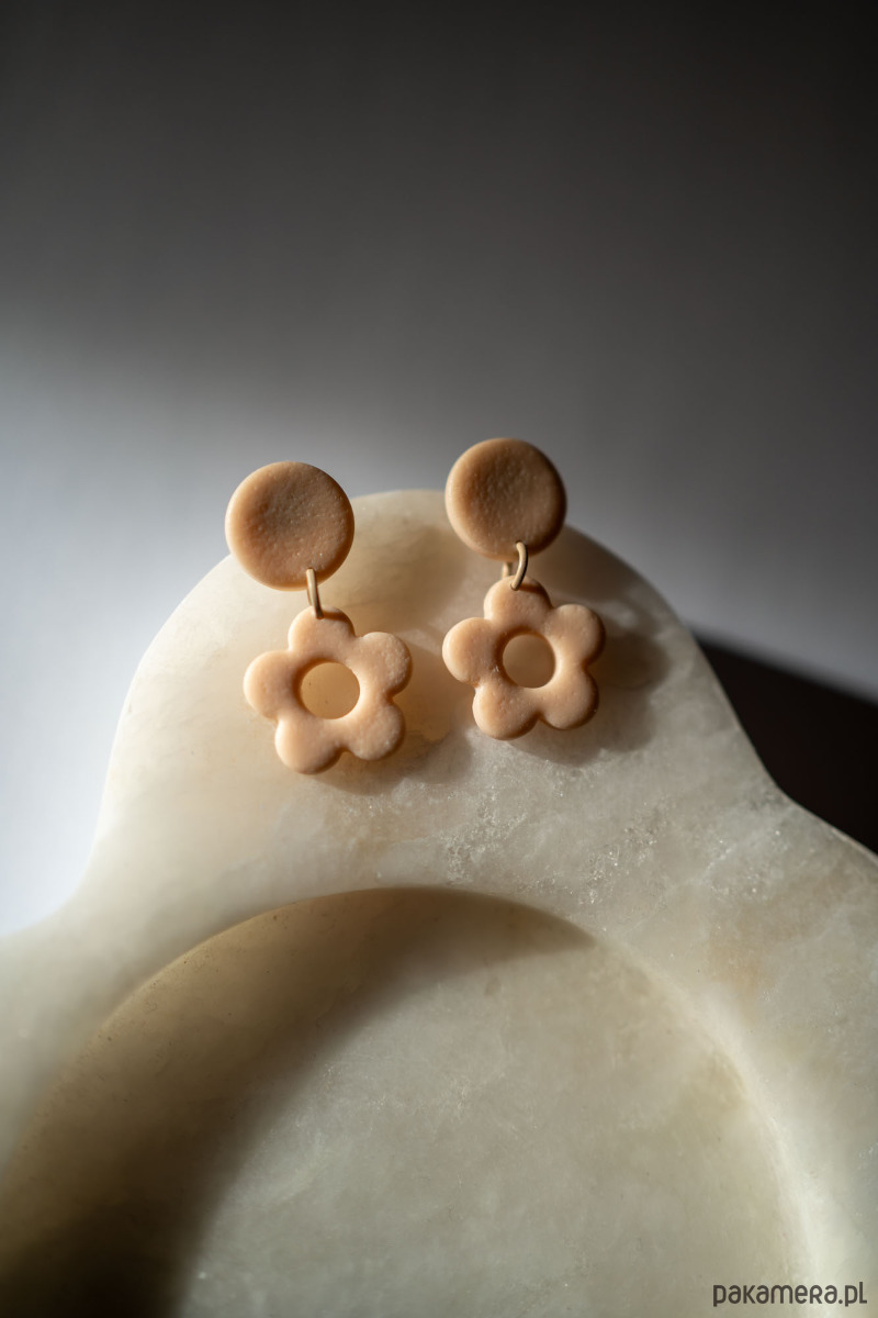 Wiszące kolczyki kwiatki MINI WERSJA. Każdy element jest wykonany, wycinany i szlifowany ręcznie z dbałością o każdy szczegół.