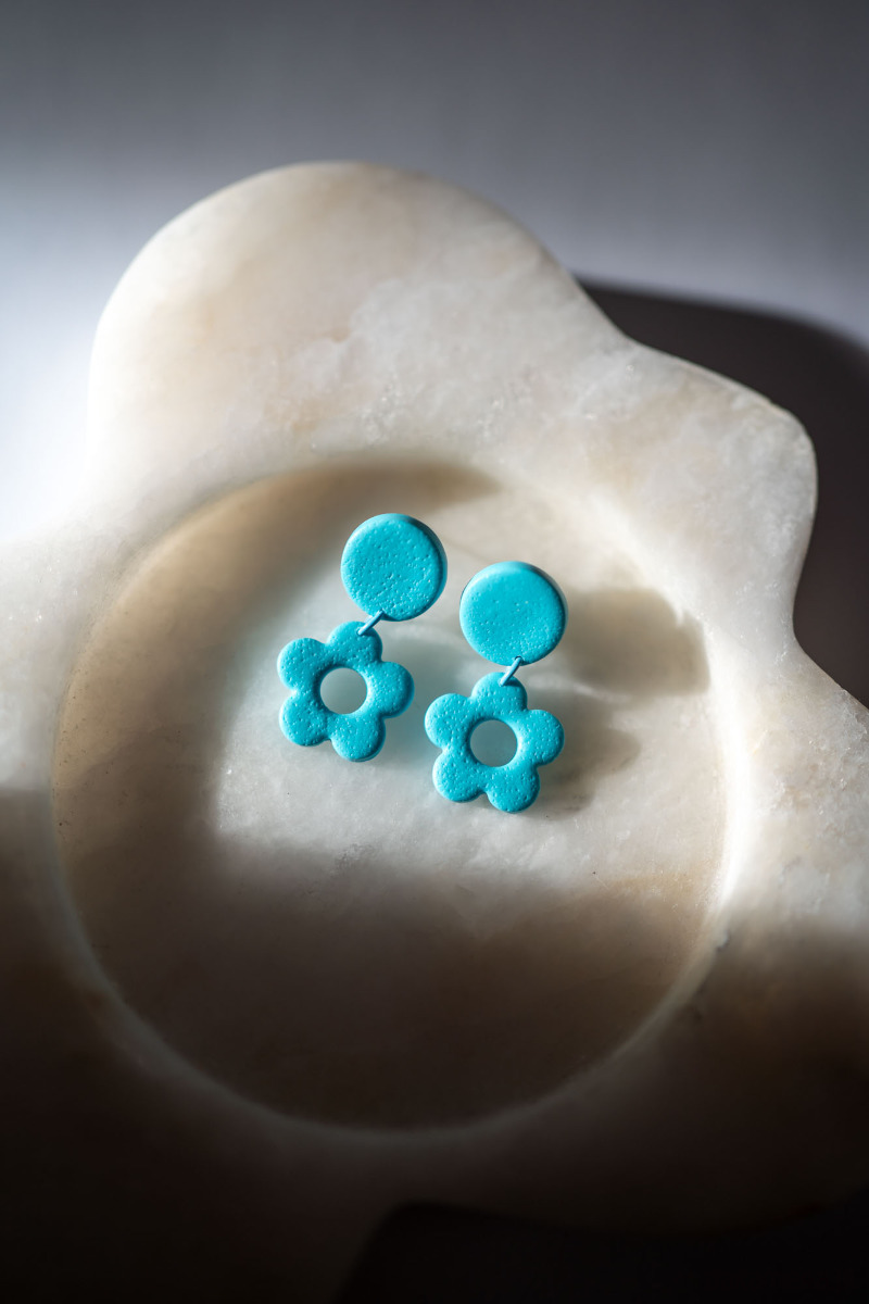 Wiszące kolczyki kwiatki MINI WERSJA. Każdy element jest wykonany, wycinany i szlifowany ręcznie z dbałością o każdy szczegół.