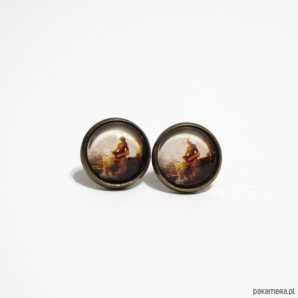 Grafika ukryta w delikatnych kolczykach, pod osłoną przeźroczystego półokrągłego szkiełka.
