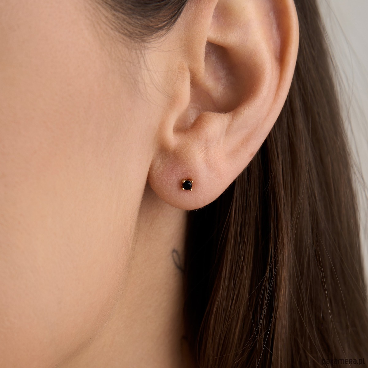 Kolczyki mini ozdobione czarnymi cyrkoniami- srebro 925 pozłacane