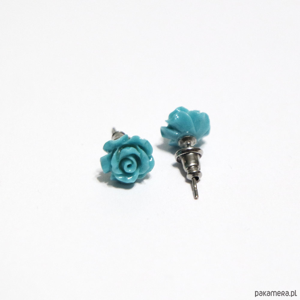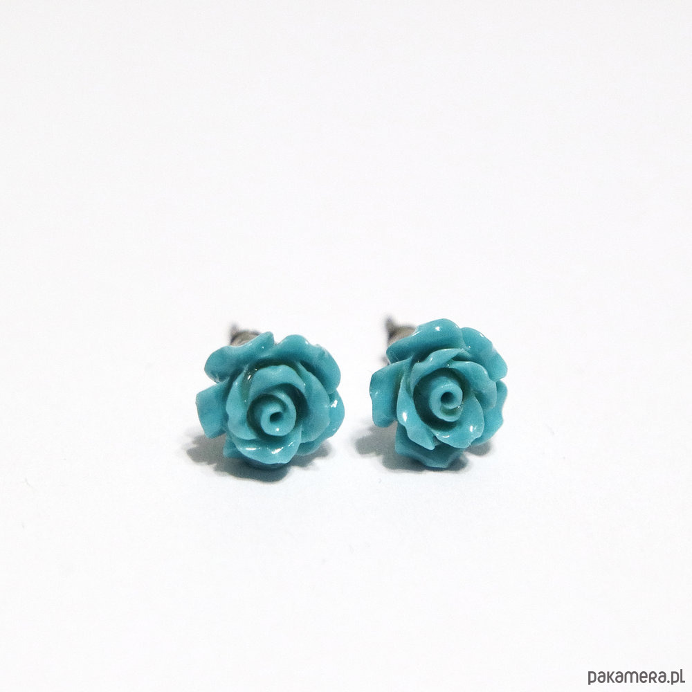 Kolczyki mini - Turkusowo niebieska róża - koral