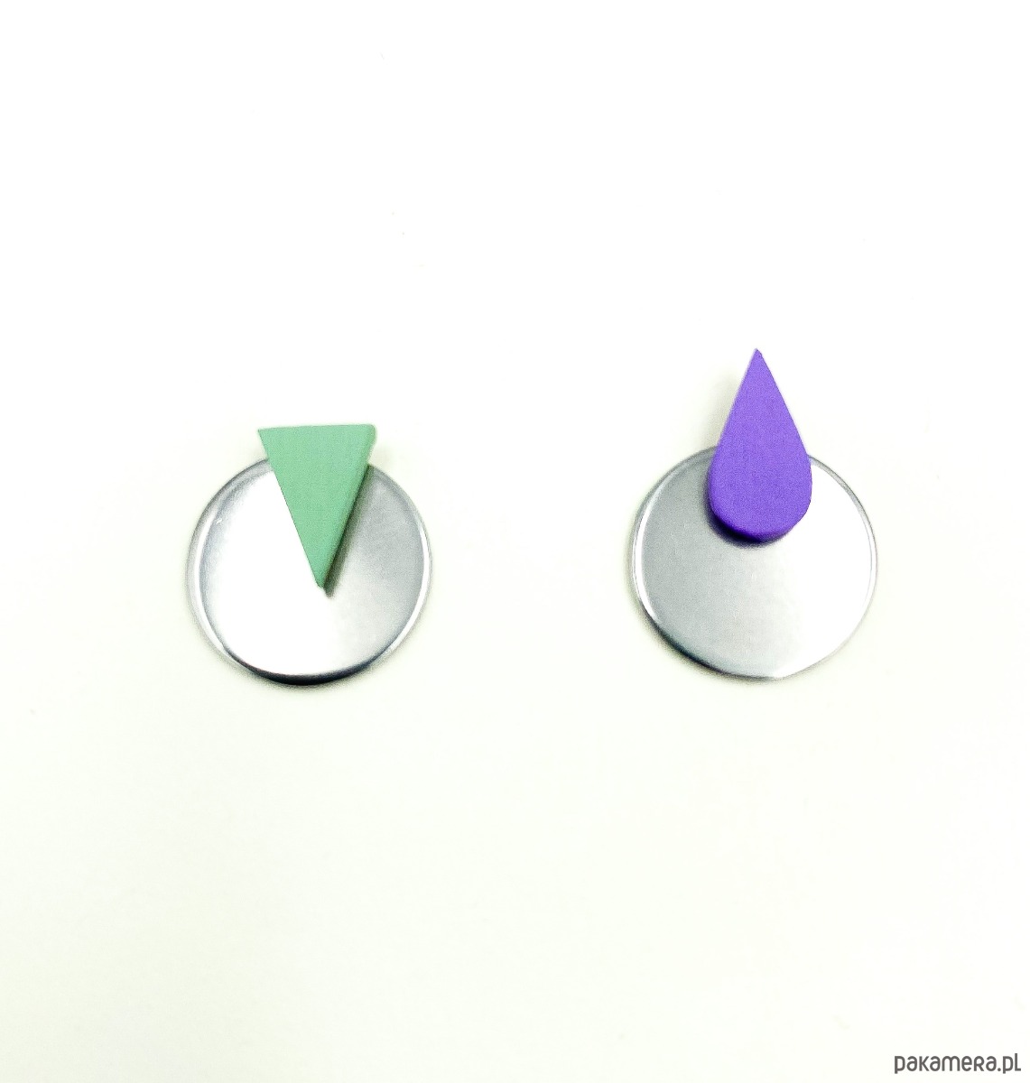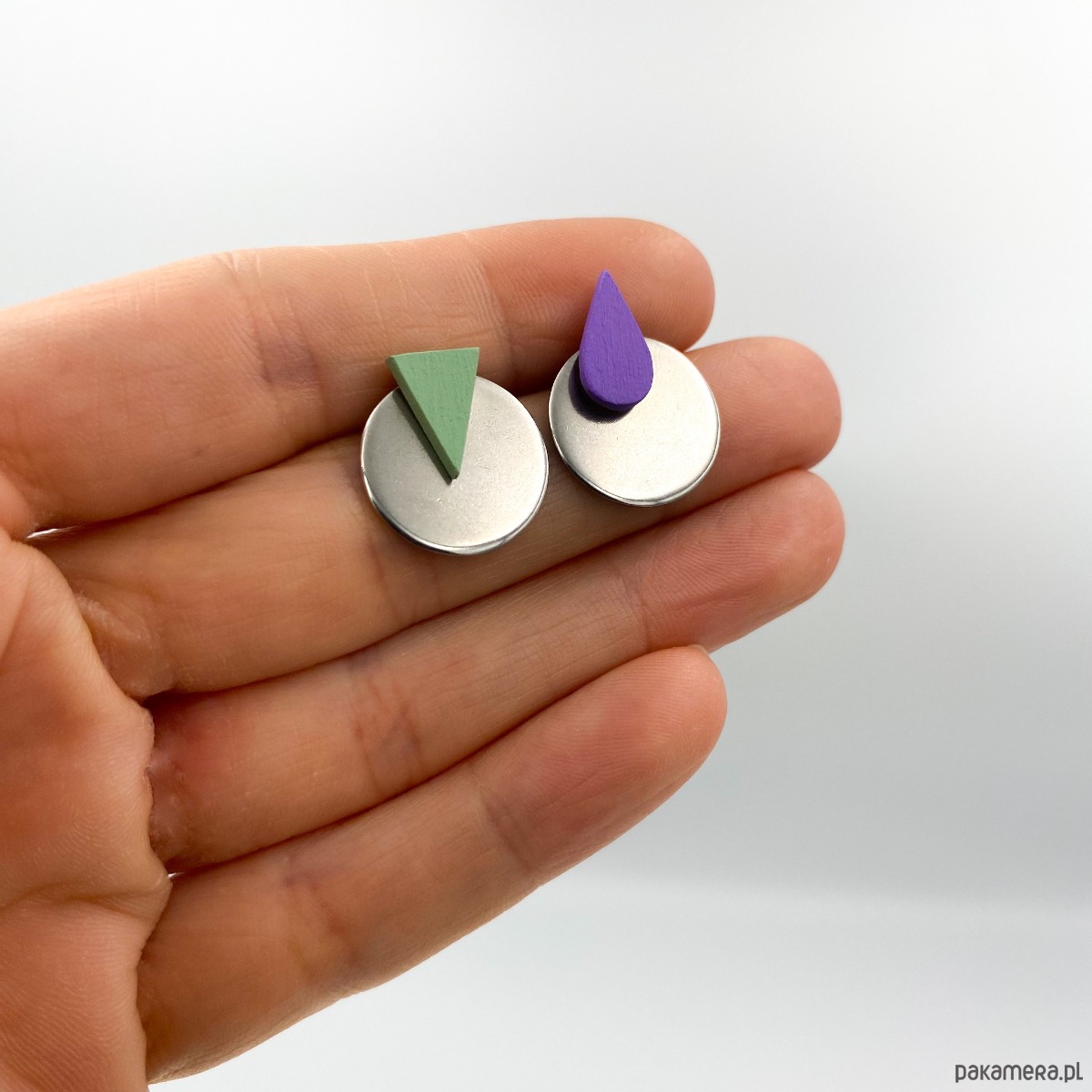 Kolczyki zostały wykonane ręcznie z drewna brzozowego, pokryte akrylową farbą oraz ekologicznym lakierem.