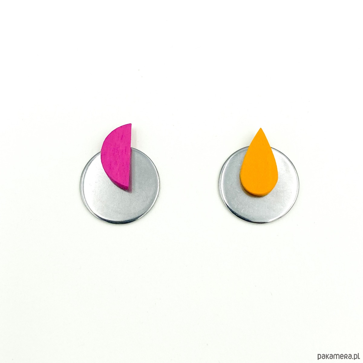 Kolczyki zostały wykonane ręcznie z drewna brzozowego, pokryte są akrylową farbą oraz ekologicznym, matowym lakierem.