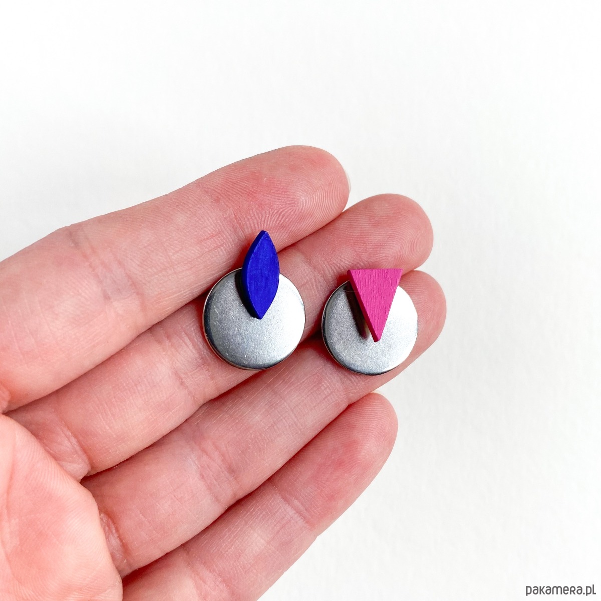 Kolczyki zostały wykonane ręcznie z drewna brzozowego, pokryte akrylową farbą oraz ekologicznym lakierem.