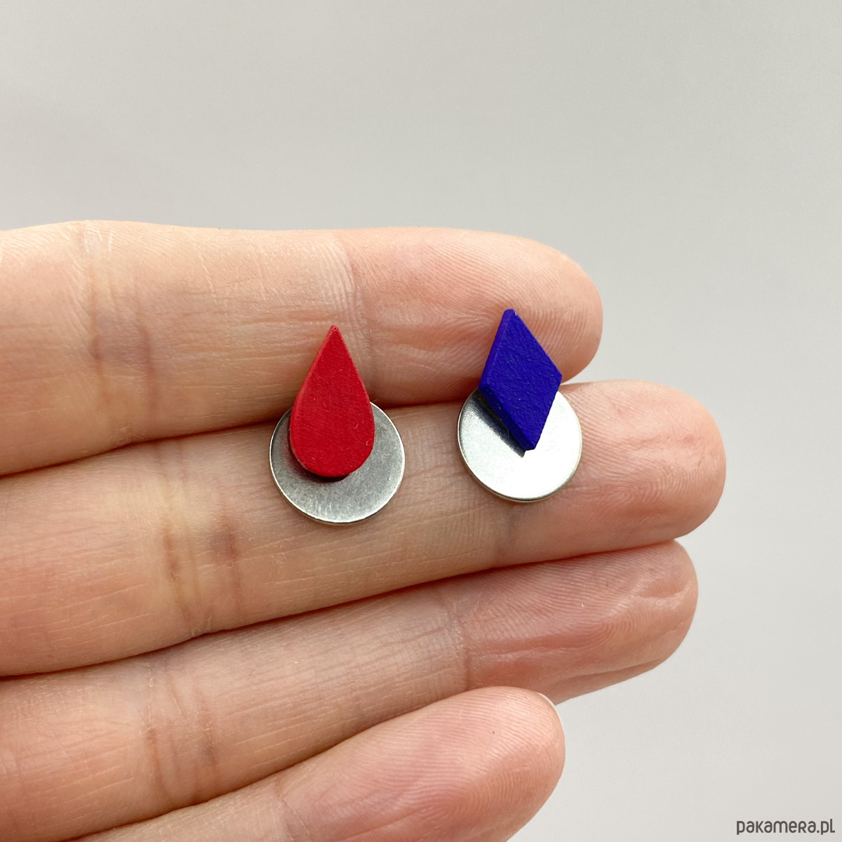 Kolczyki zostały wykonane ręcznie z drewna brzozowego, pokryte akrylową farbą oraz ekologicznym lakierem.