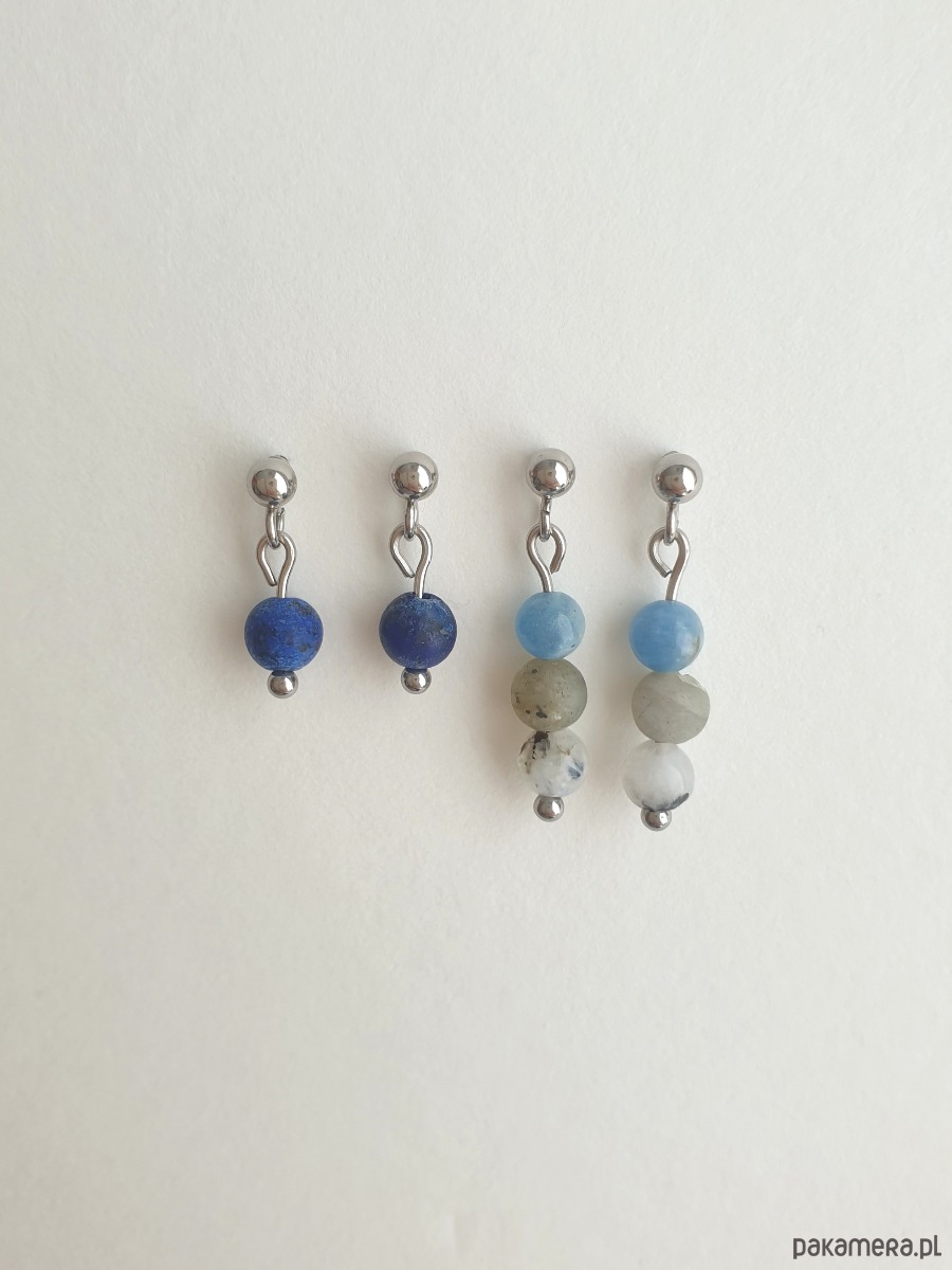 Kolczyki MINI zestaw lapis lazuli, akwamaryn, labradoryt, kamień księżycowy