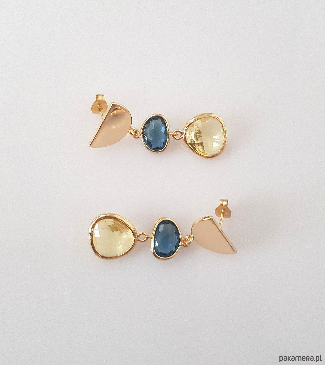 Oprawa kryształów i sztyfty wykonane z mosiądzu platerowanego złotem.