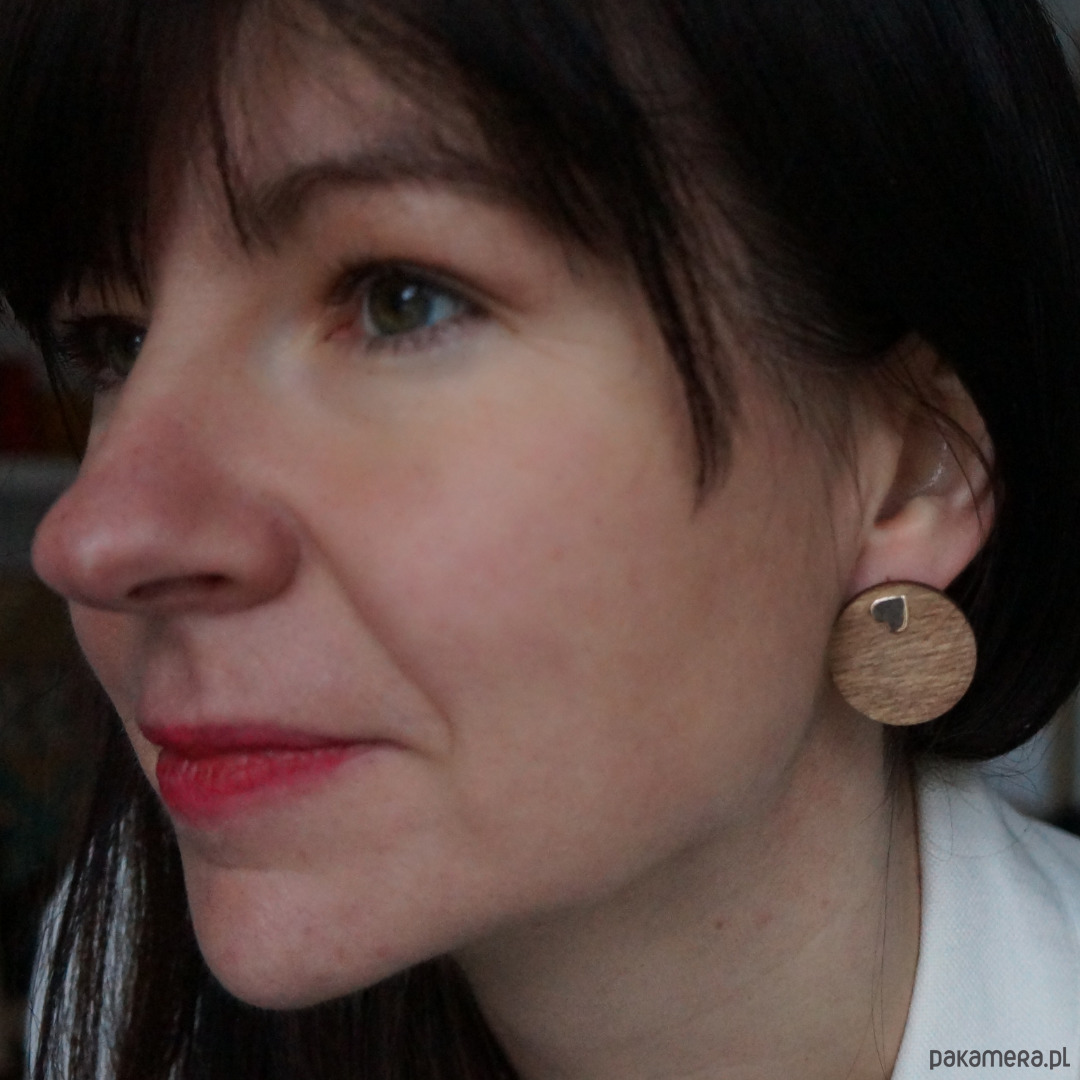 Piękne kolczyki modułowe serduszka z drewnianą dwustronną nakładką.