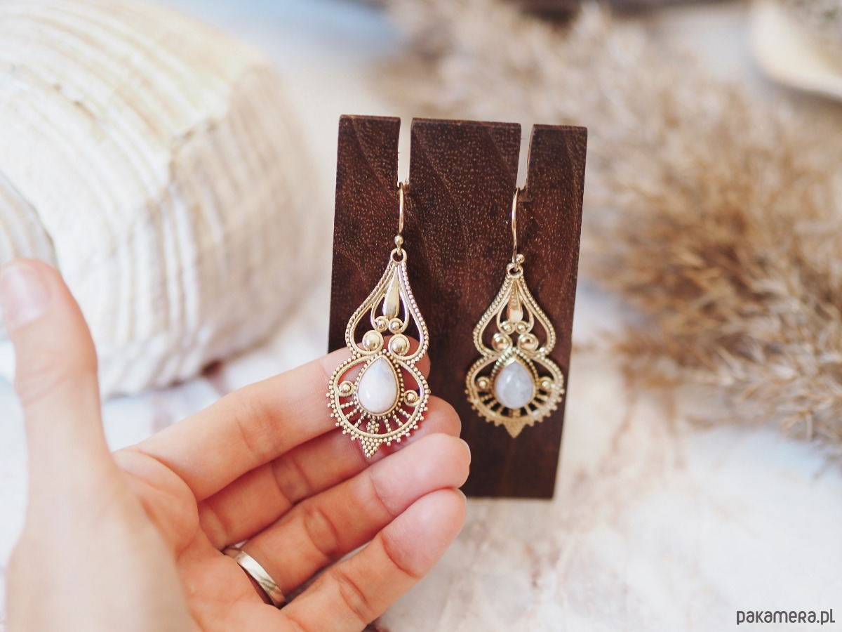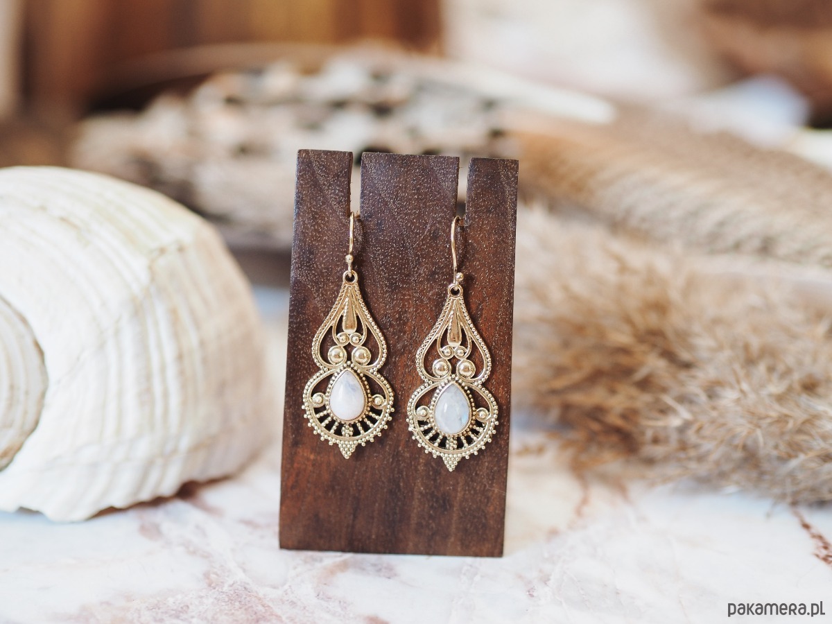 Kolczyki 'MOHINI' z kamieniem księżycowym