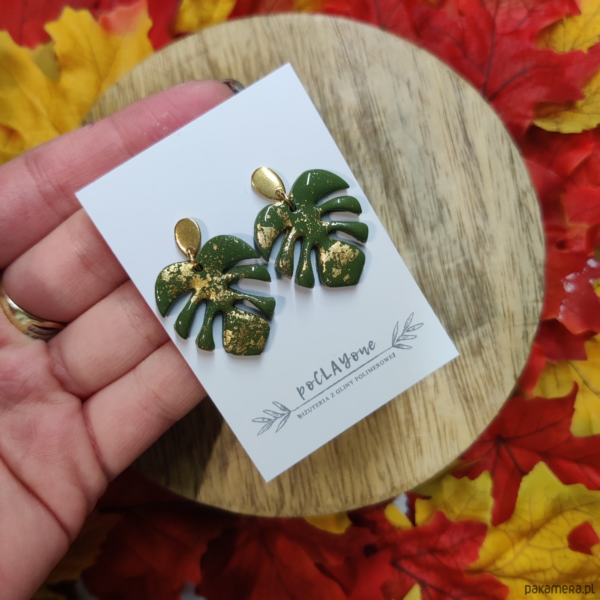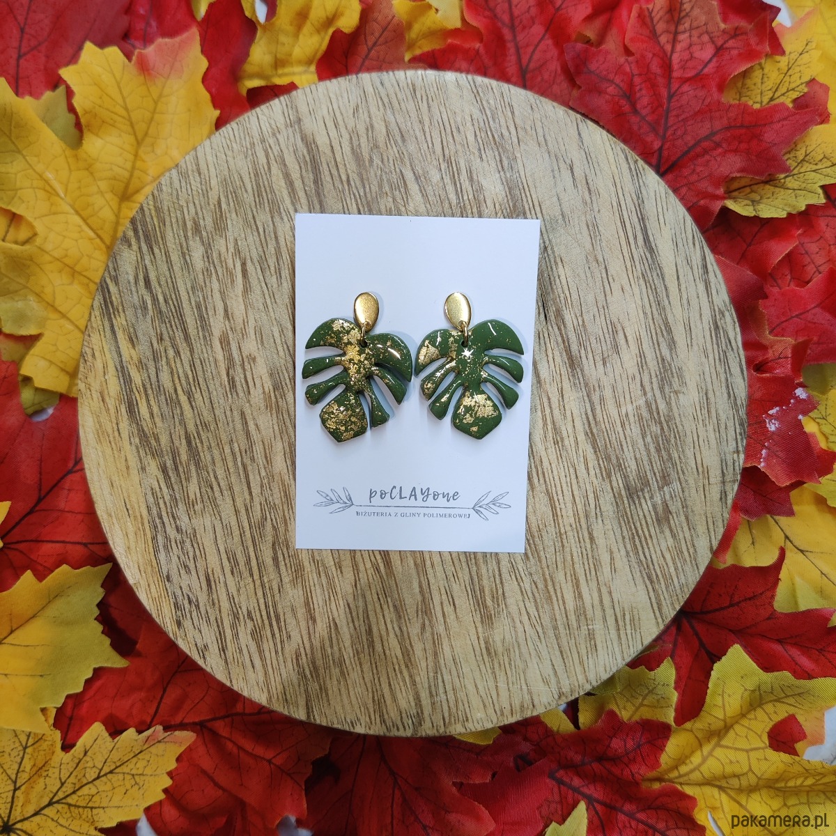 Ręcznie robione kolczyki z gliny polimerowej. Sztyfty ze stali chirurgicznej więc nie uczulają. Długość listka to 2,5cm