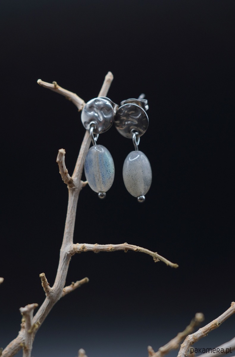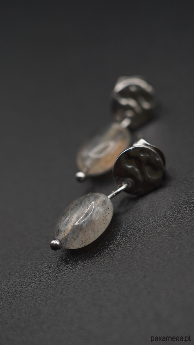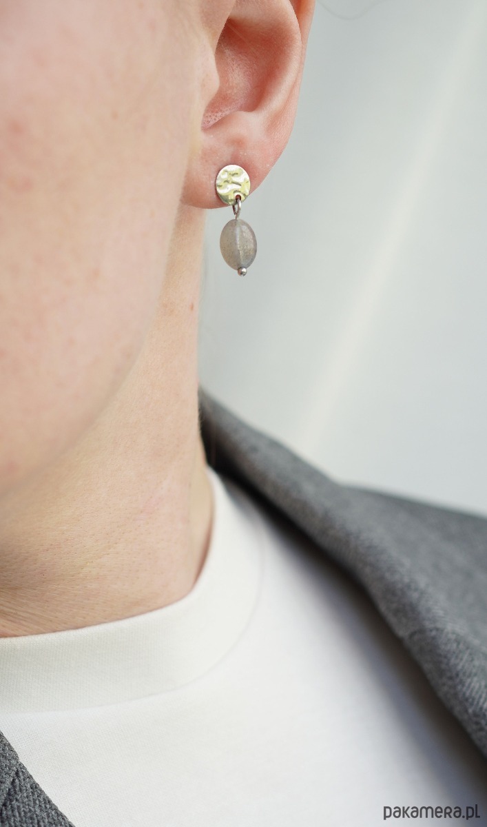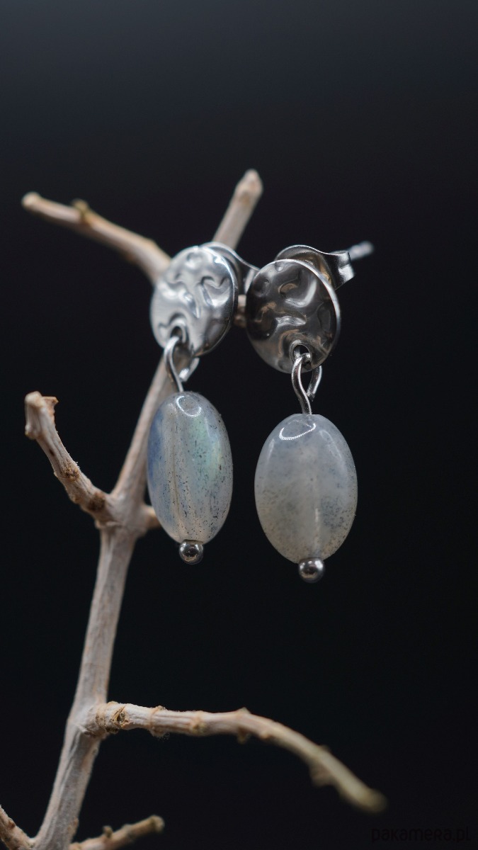 Odkryj magię labradorytu – kamienia, który ożywa przy każdym Twoim ruchu. Te minimalistyczne kolczyki łączą w sobie tajemnicze refleksy naturalnego kamienia z nowoczesną estetyką gniecionego metalu. Idealny wybór dla osób szukających biżuterii o głębokim znaczeniu i niepowtarzalnym charakterze.