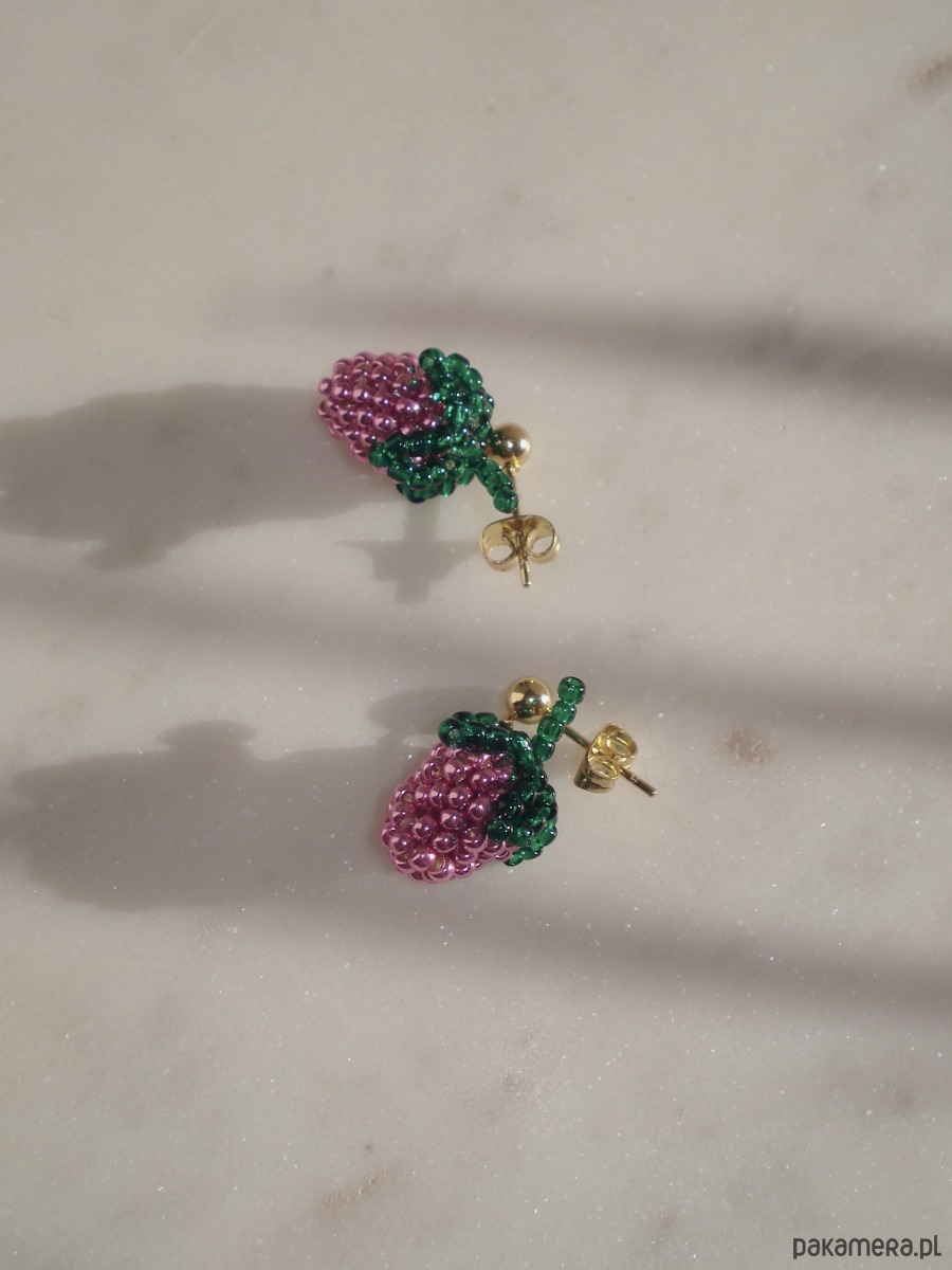 Owoce są ręcznie szyte z najwyższej jakości japońskich, szklanych koralików.