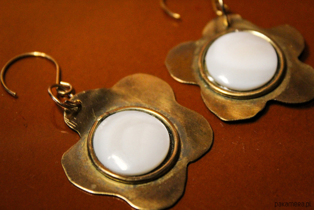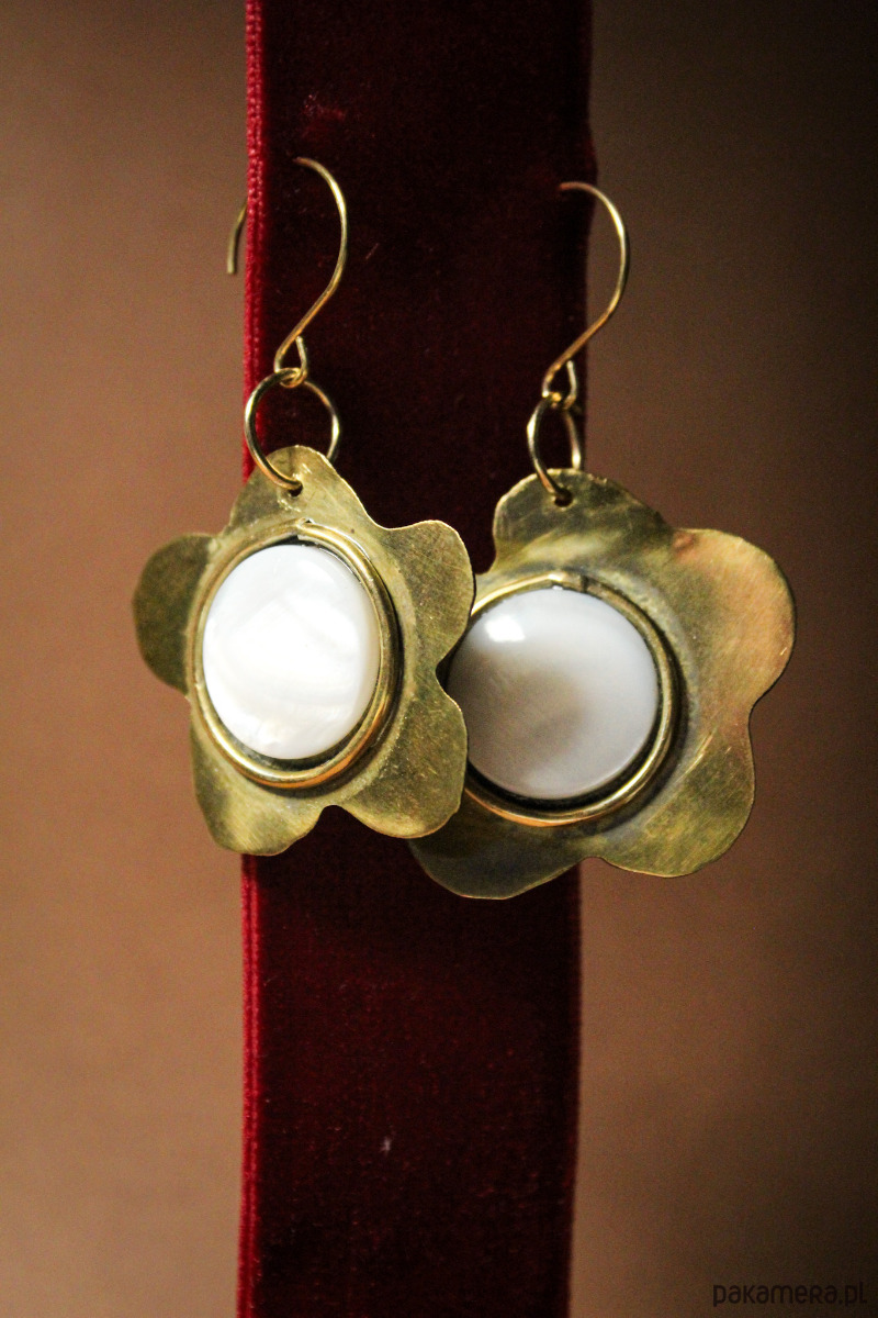Kolczyki mosiężne "Perłowe kwiaty"