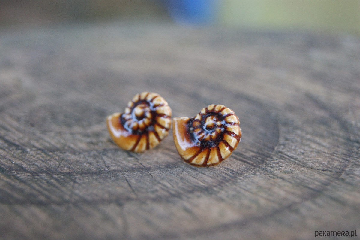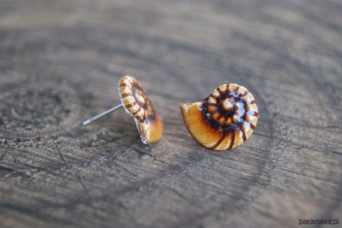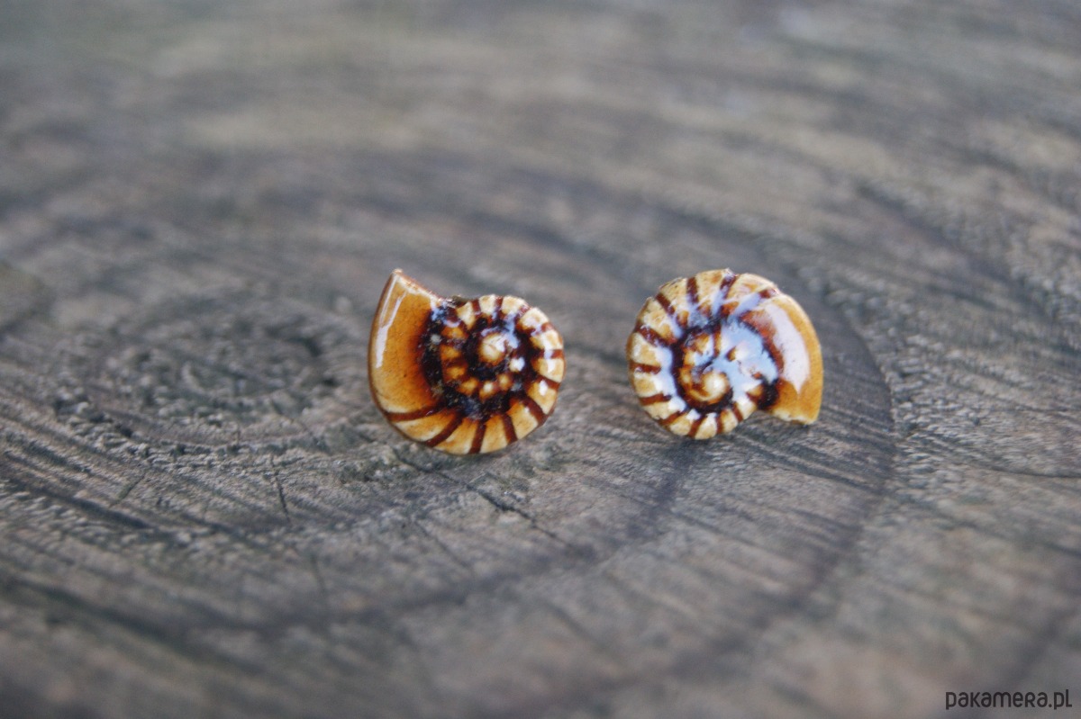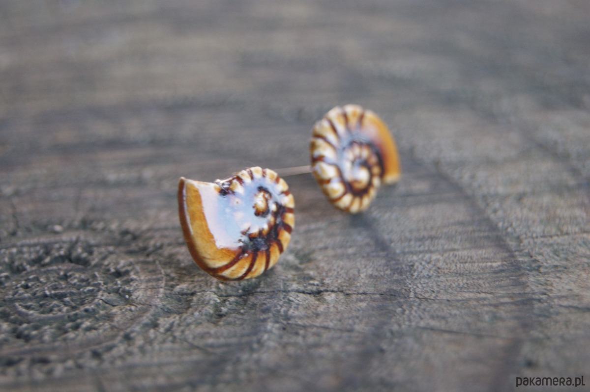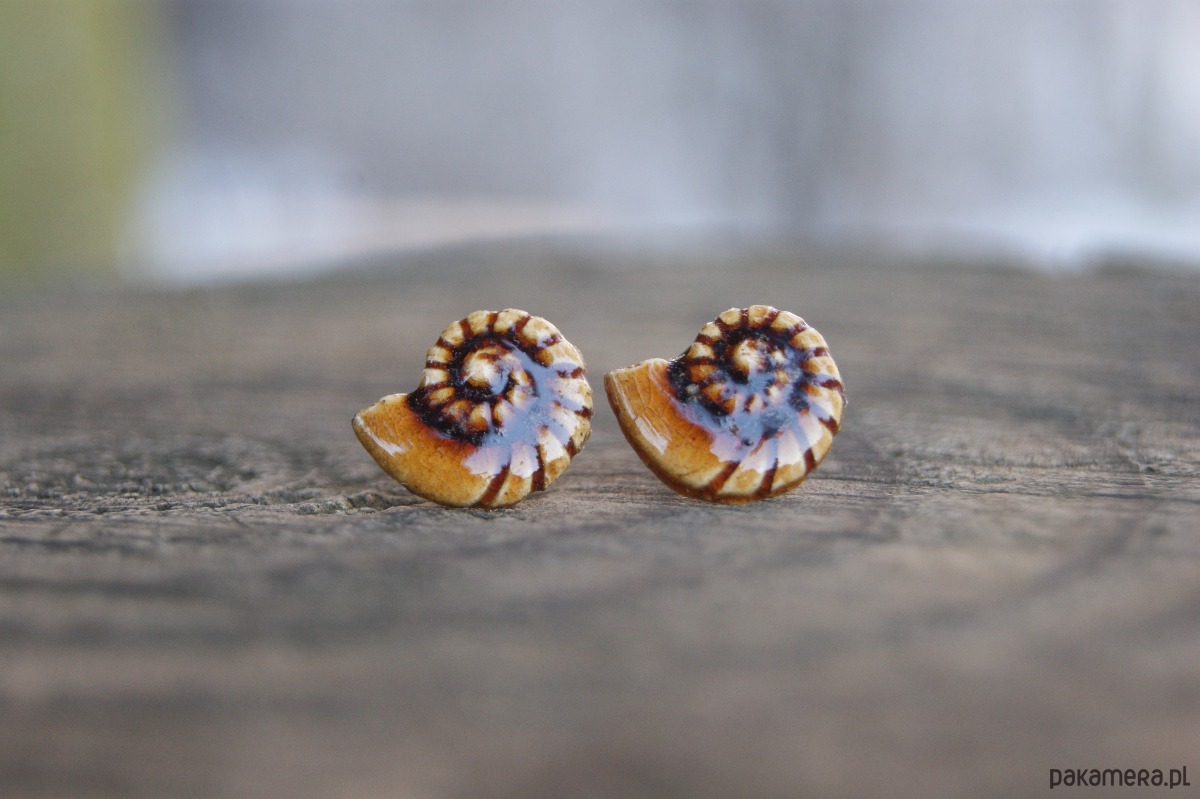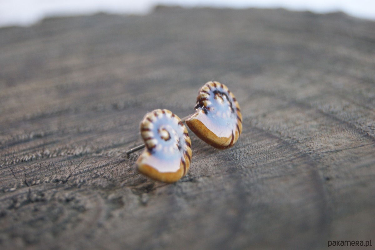 Kolczyki Muszelki Bursztynowe Echo Oceanu - ceramiczne sztyfty