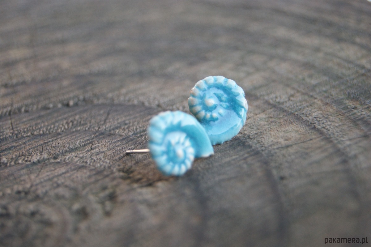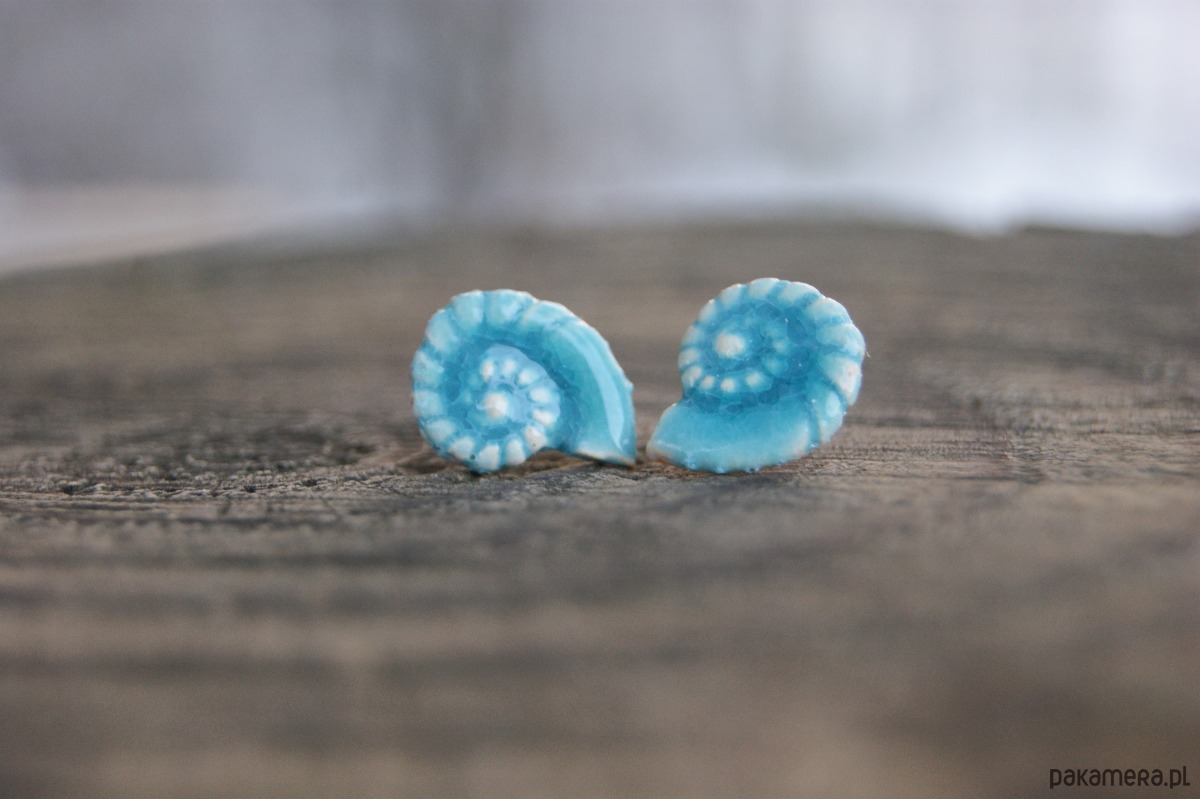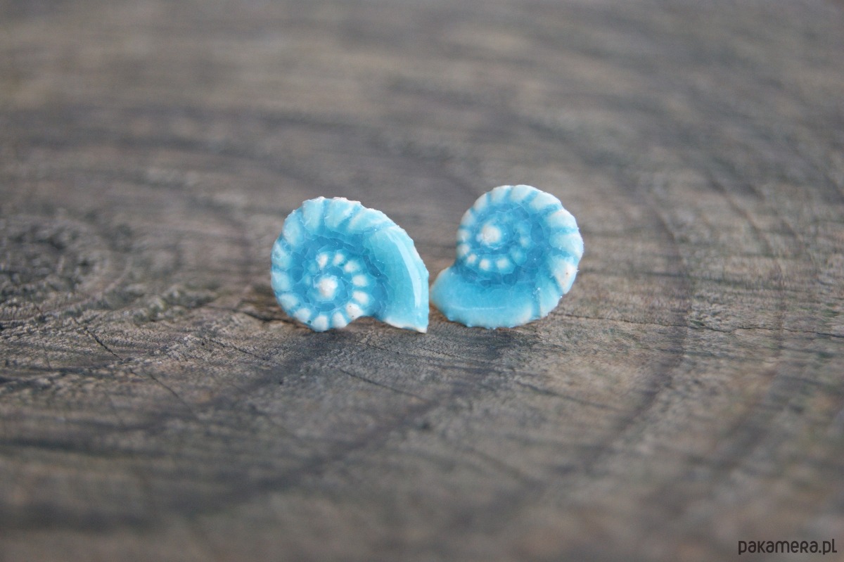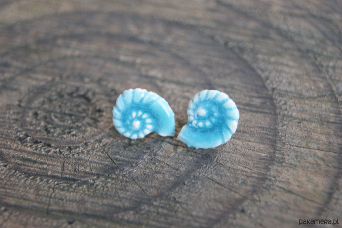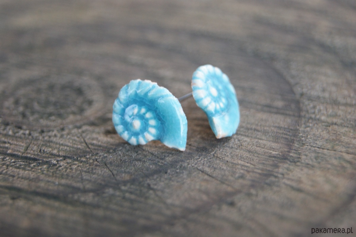 Kolczyki Muszelki "Turkusowe Echo Oceanu" - ceramiczne sztyfty
