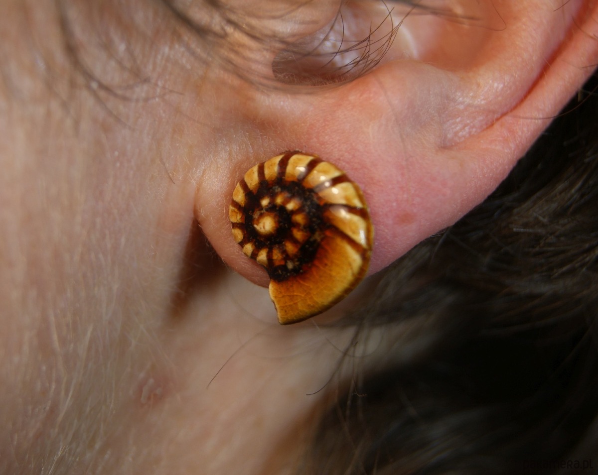 Rzeczywista wielkość kolczyków w uchu pokazana jest na ostatnim zdjęciu.