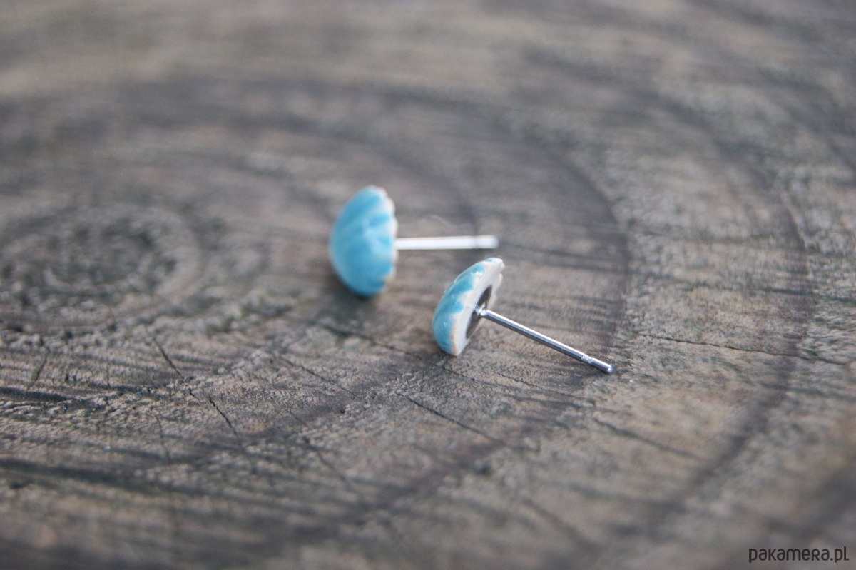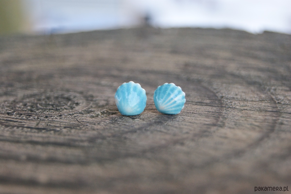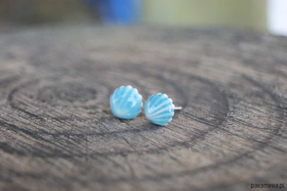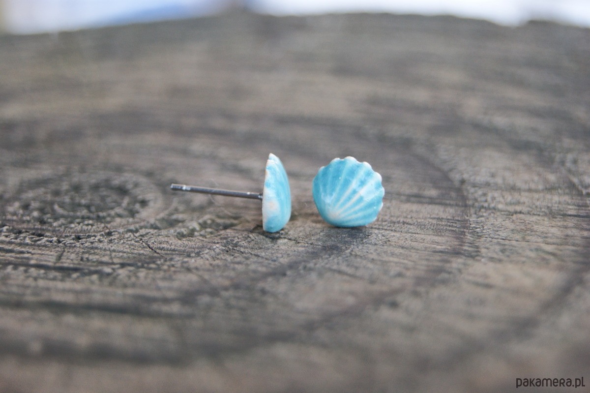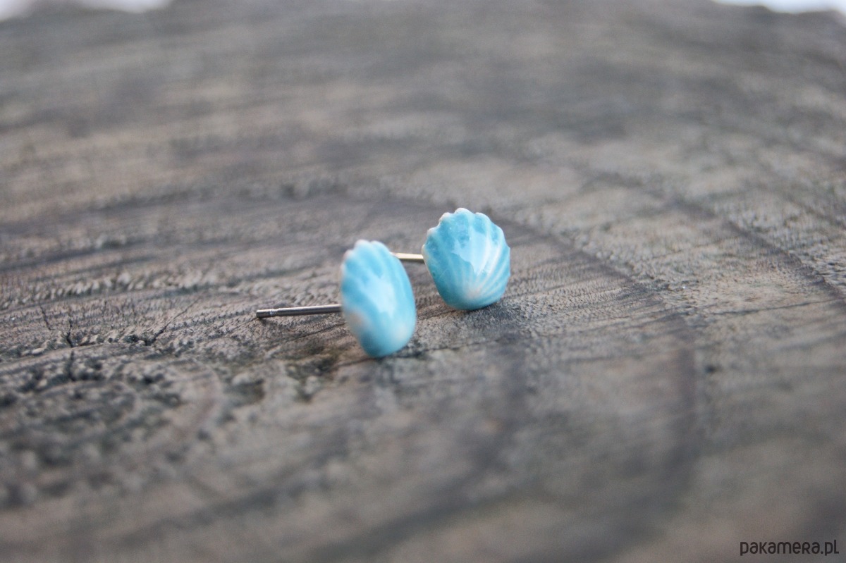 Kolczyki Muszelki "Turkusowy Brzeg"- ceramiczne sztyfty