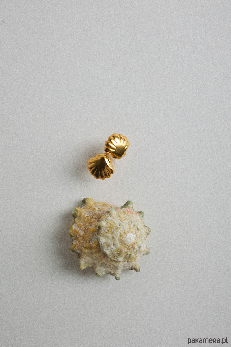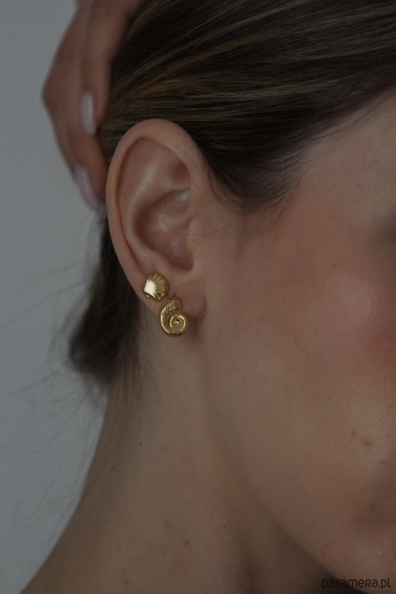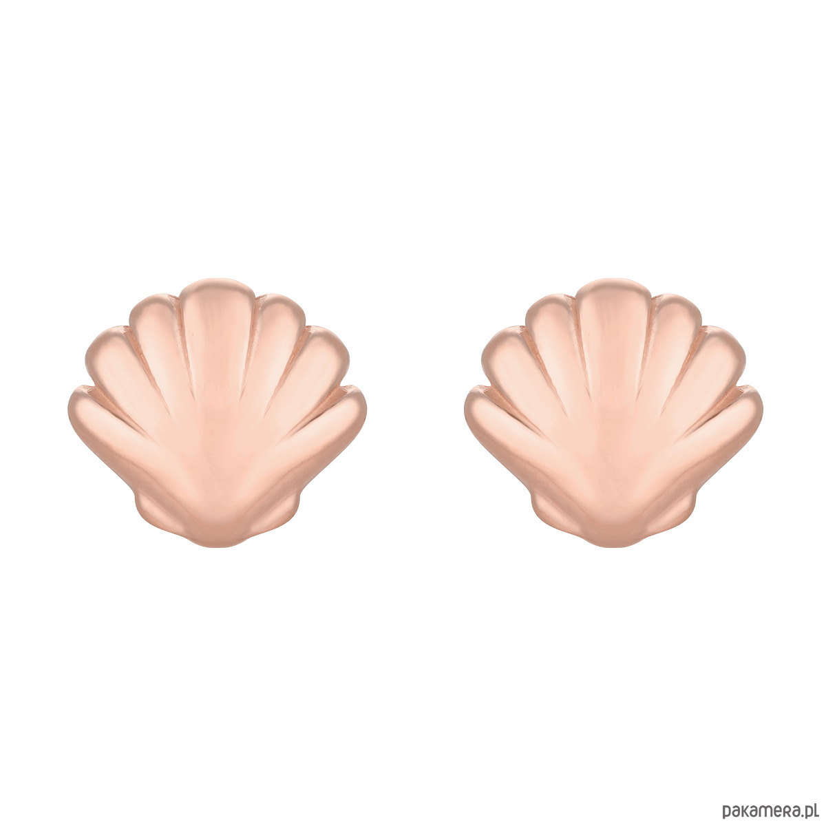 Złote kolczyki muszelki. Całość wykonana ze srebra 925 powlekanego 18 karatowym różowym złotem. Zapinane na sztyft. Kolczyki posiadają zapięcia (baranki).