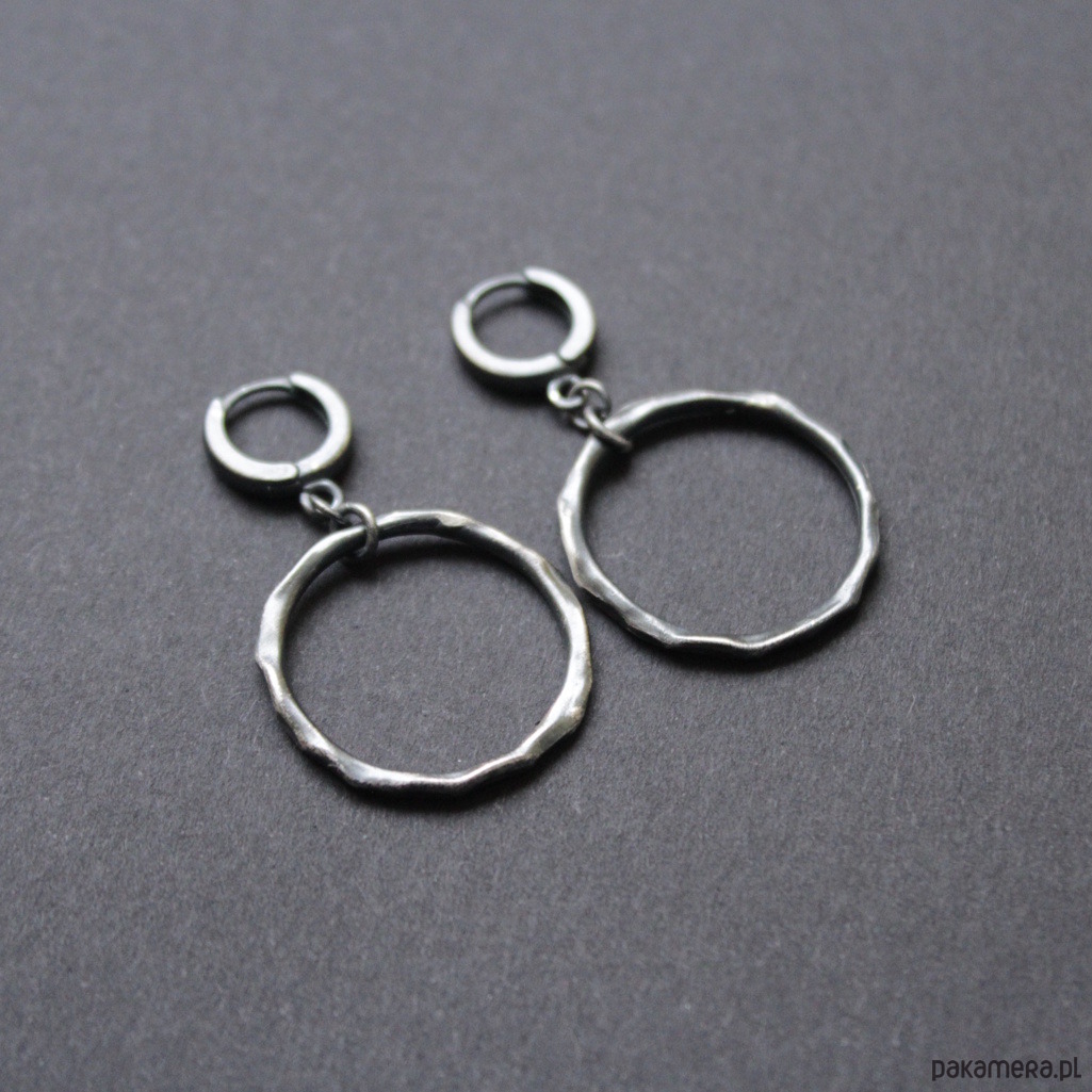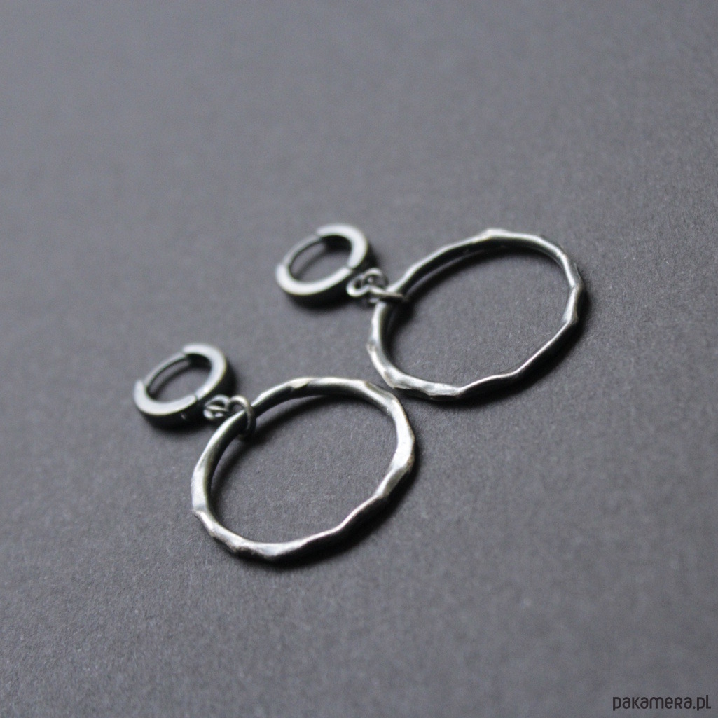 Oryginalne kolczyki wykonane zostały z oksydowanego srebra próby 925.