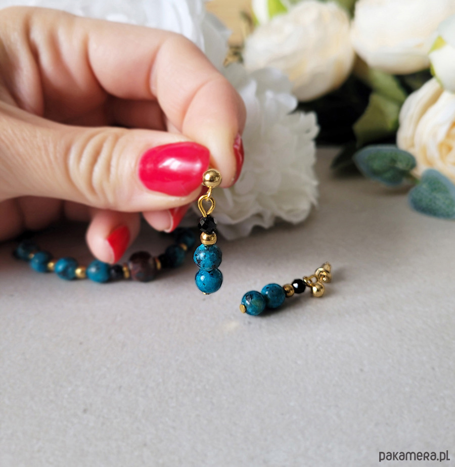Kolczyki na sztyftach ze stali szlachetnej zrobione z kamieni o średnicy ok.6 oraz 4mm.