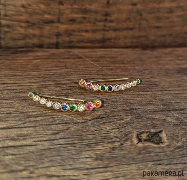 Czaki Bransoletki to modne piękne kolczyki, komplet 2szt. Srebro 925 pokryte 24kt złotem lub srebro rodowane z kolorowymi kamyczkami. Wymiary 3,5cm.